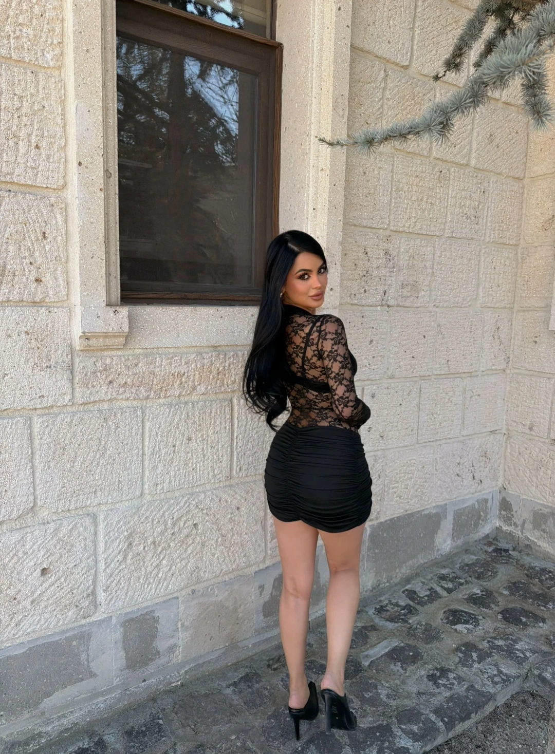 Aksesuarlı Dantel Elbise