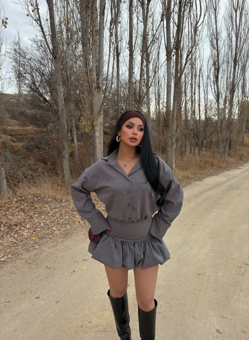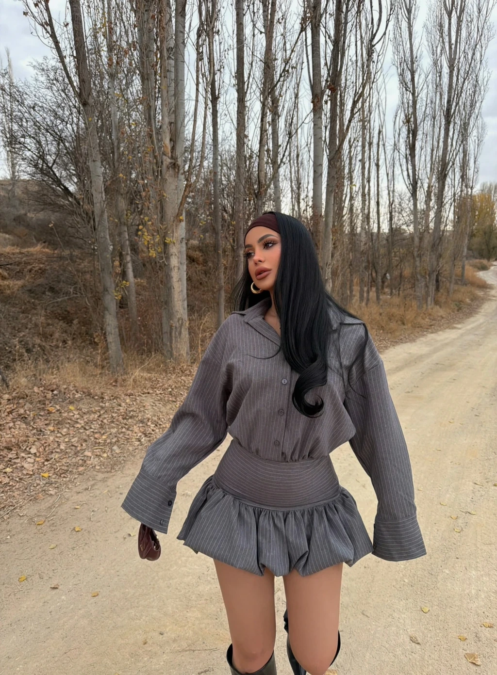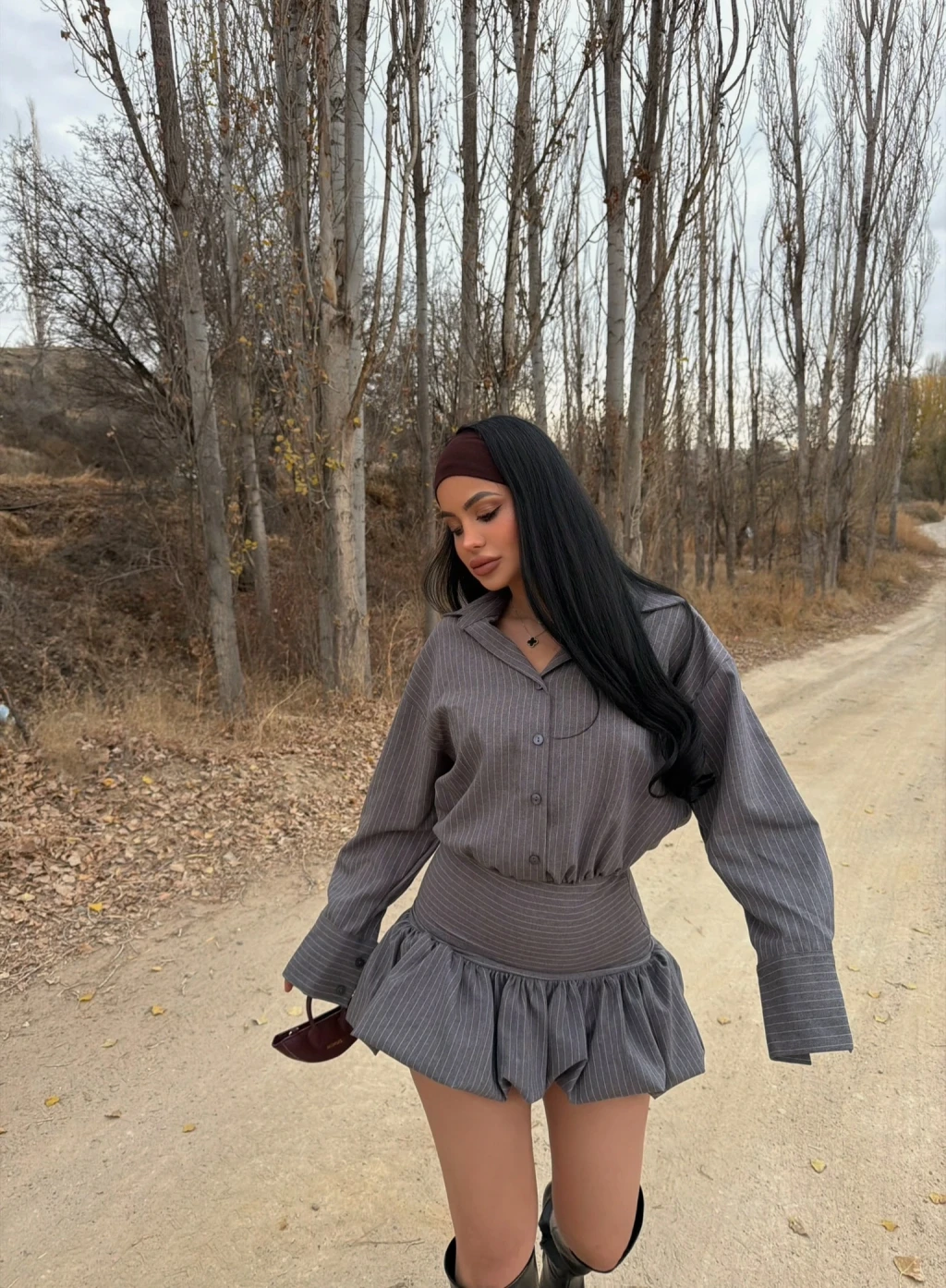 Şık ve feminen bir görünüm için ideal bir seçenek olan Balon Etekli Gömlek Elbise, Kırmızı Butik'in öne çıkan tasarımlarından biridir.