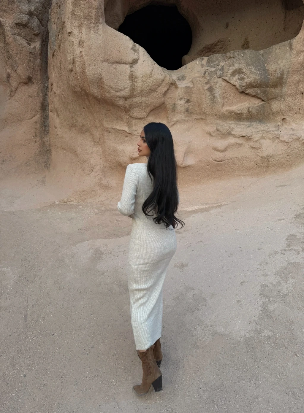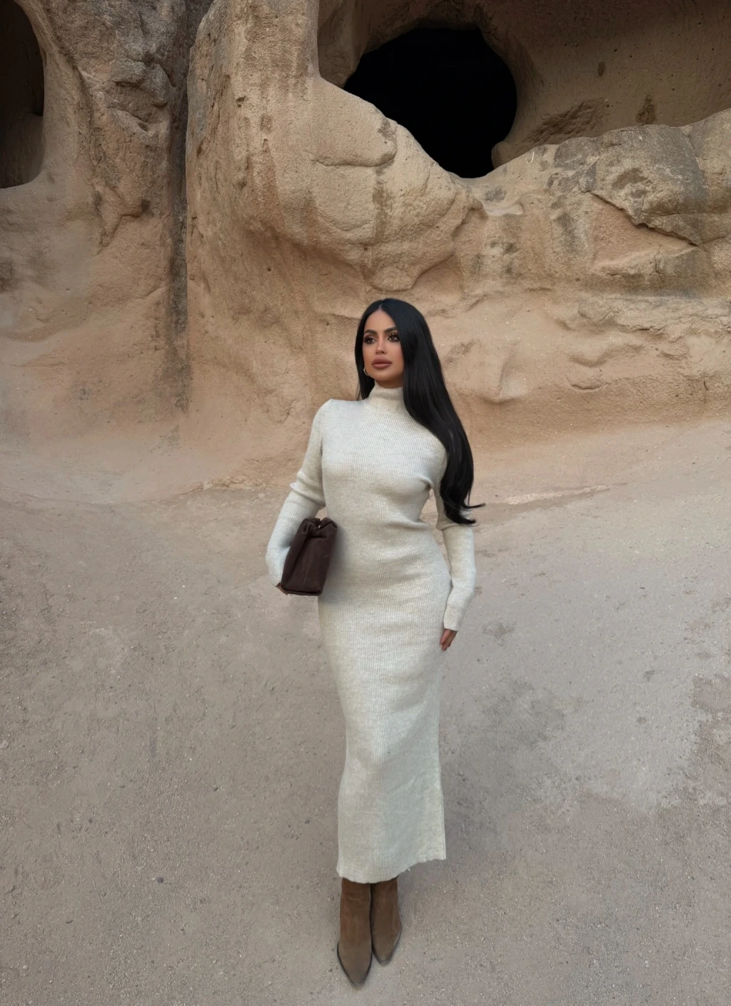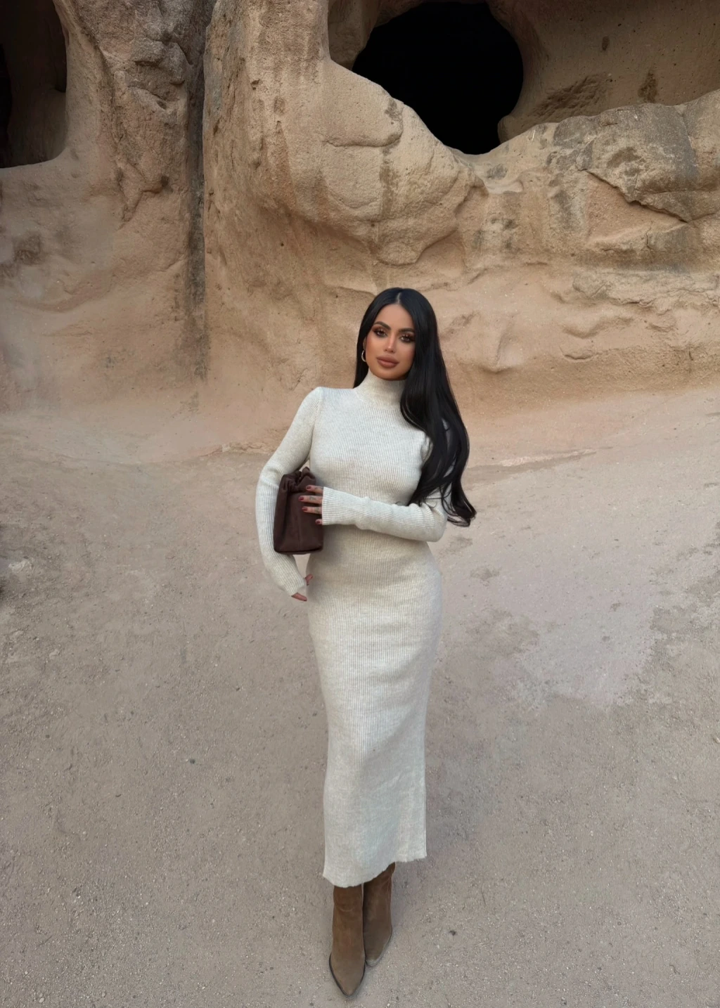 Bej Balıkçı Yaka Triko Elbise