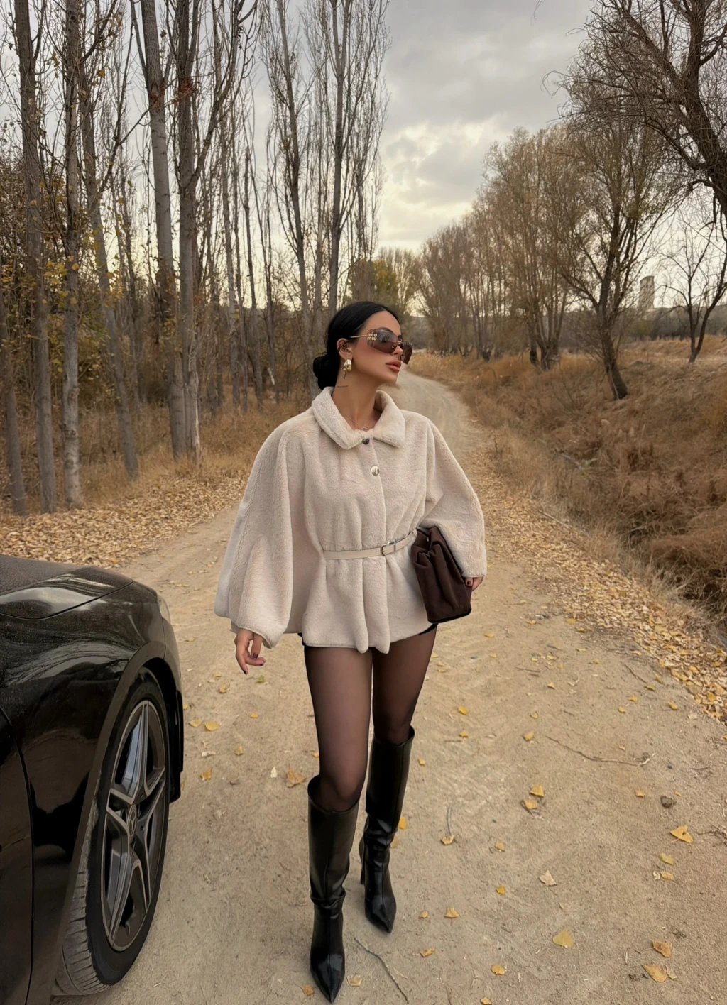Kırmızı Butik'in şık ve rahat tasarımıyla öne çıkan Kemerli Peluş Panço, soğuk havalarda stilinizden ödün vermeden sizi sıcacık tutacak bir seçenektir.