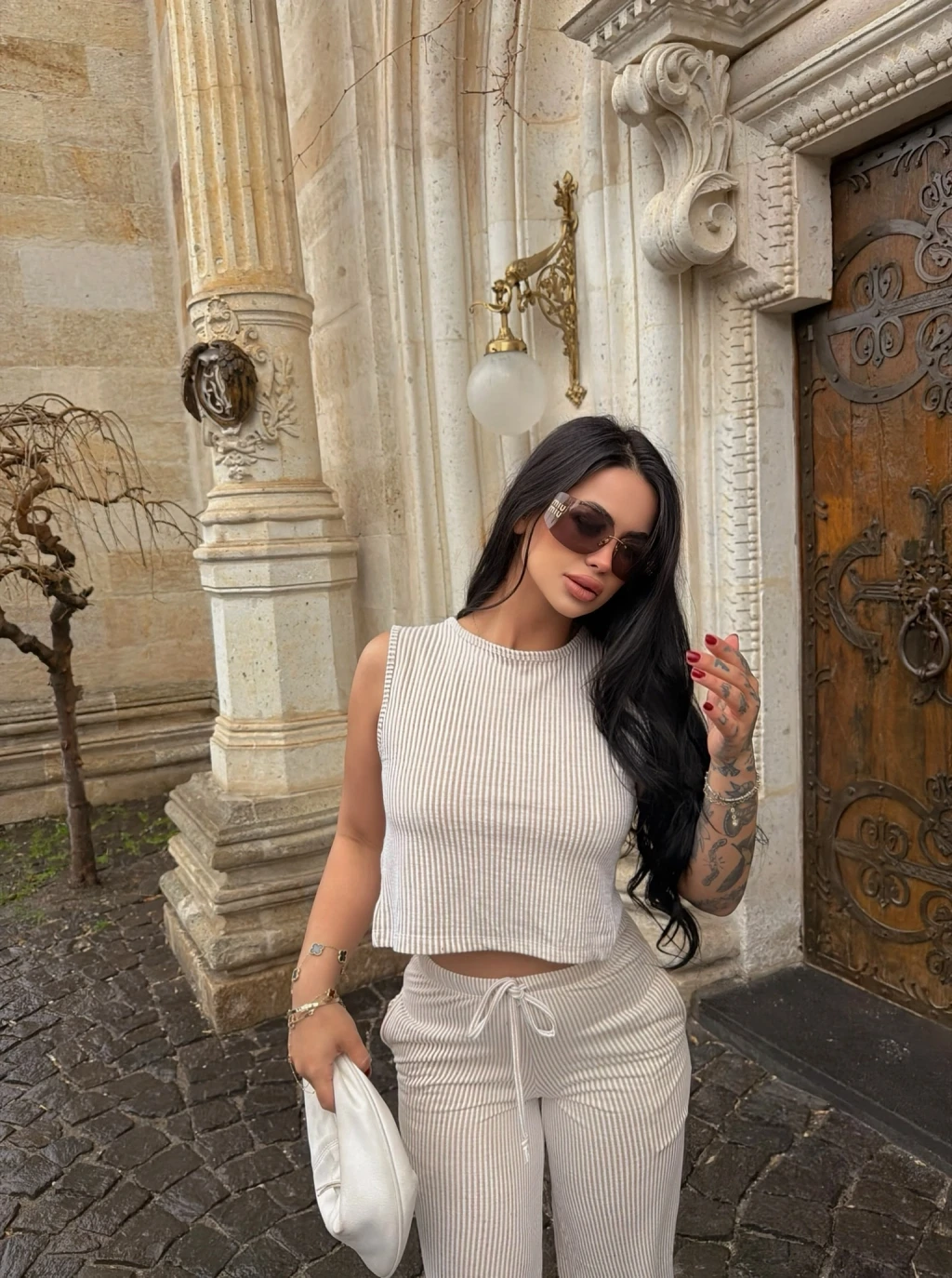 • Yüksek bel pantolon ve Sıfır kollu bluzdan oluşan takım