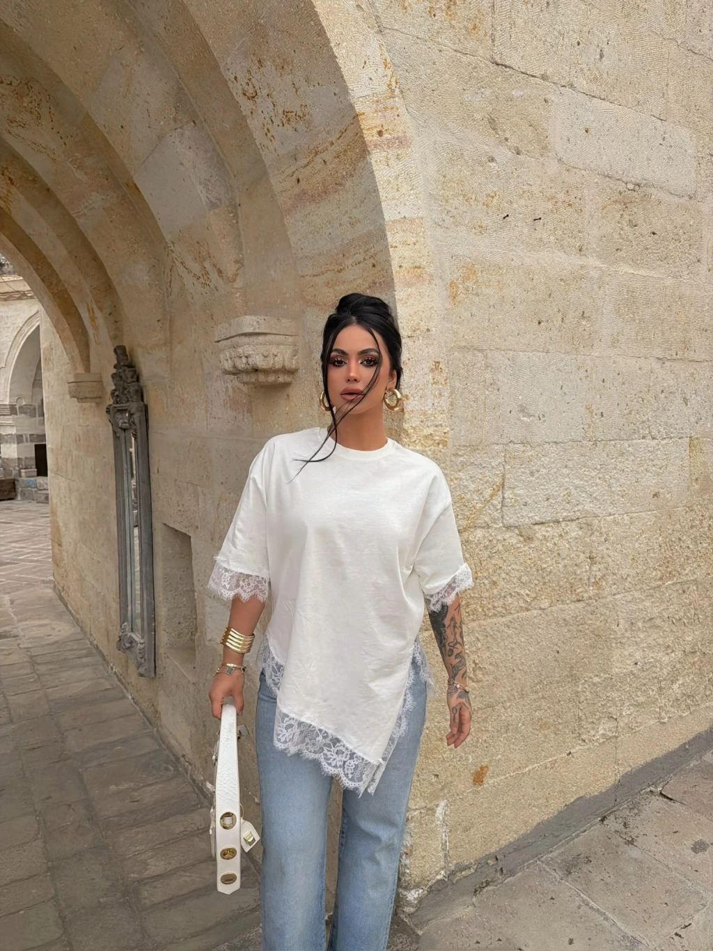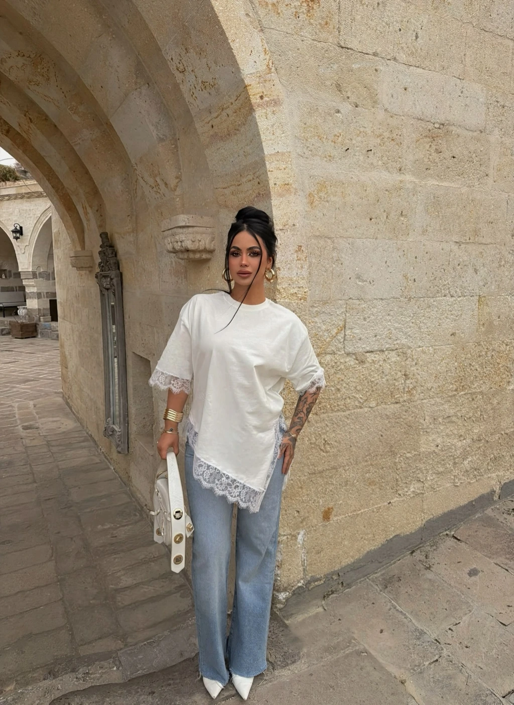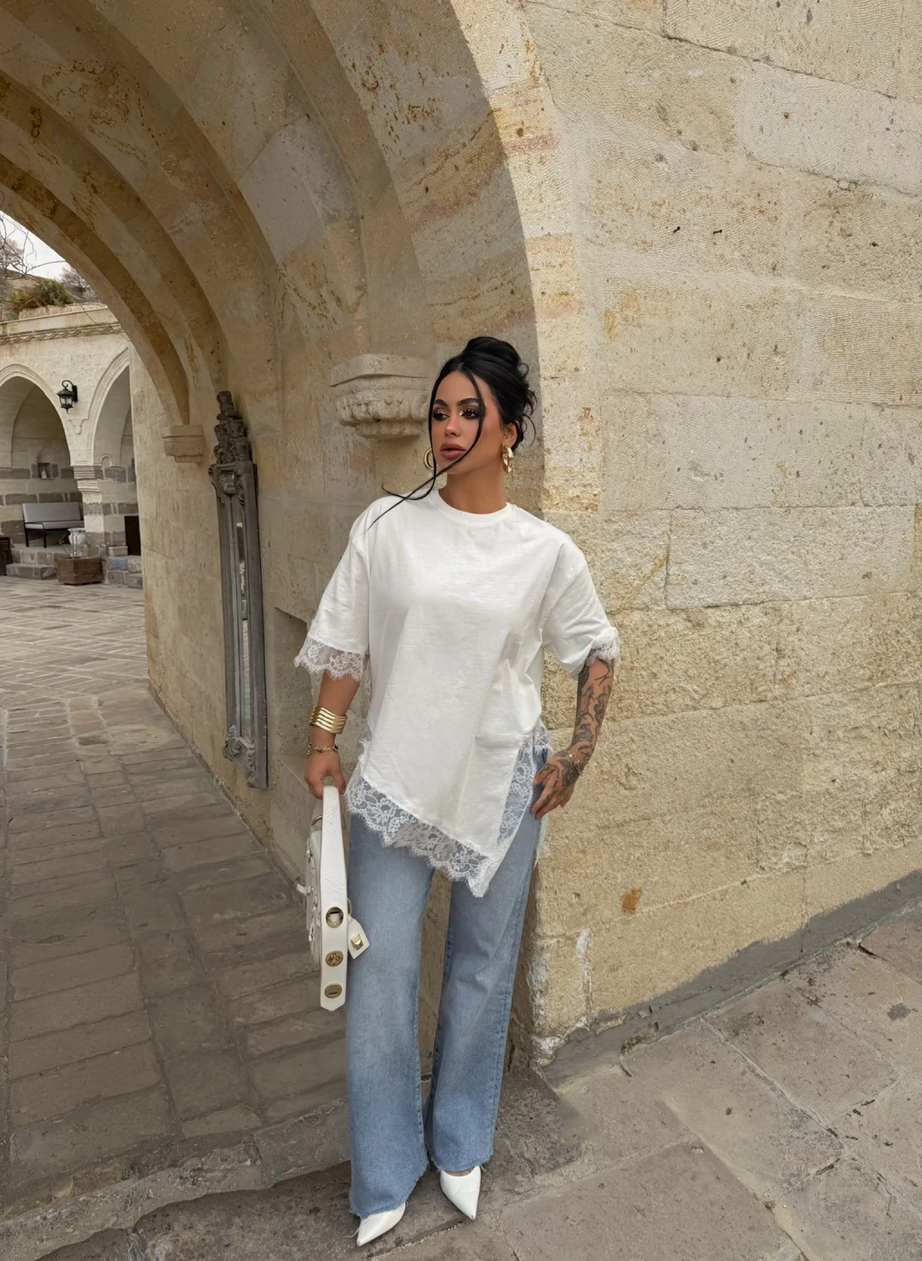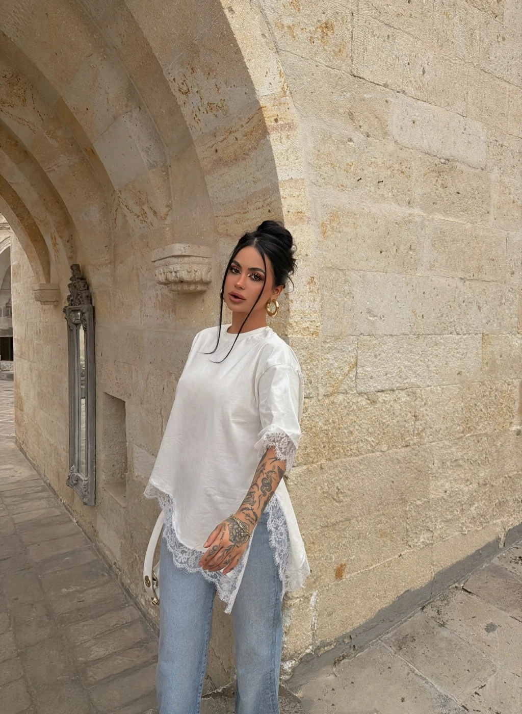 Kırmızı Butik'in asimetrik dantel işlemeli tişörtü, şıklığı ve rahatlığı bir araya getiriyor. Mükemmel detayları ve özel tasarımıyla her tarza uyum sağlar.