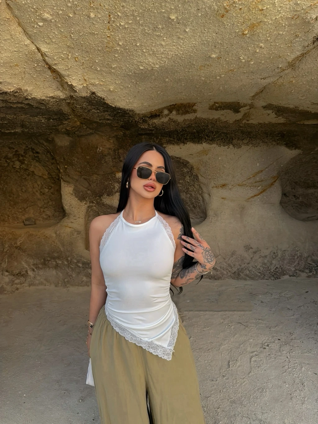 Şık detayları ve farklı tasarımı ile Asimetrik Güpürlü Bluz, gardırobunuzun vazgeçilmez parçalarından biri olmaya aday!