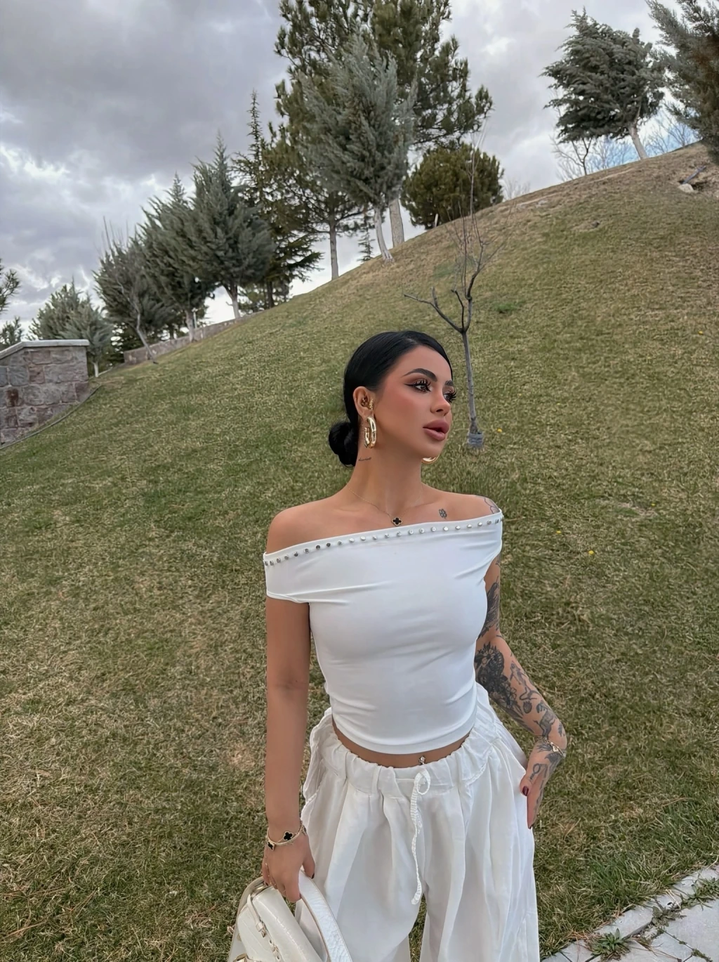 Öne çıkan bir parça arayanların favorisi Droplu Kayık Yaka Crop'u hemen keşfedin!