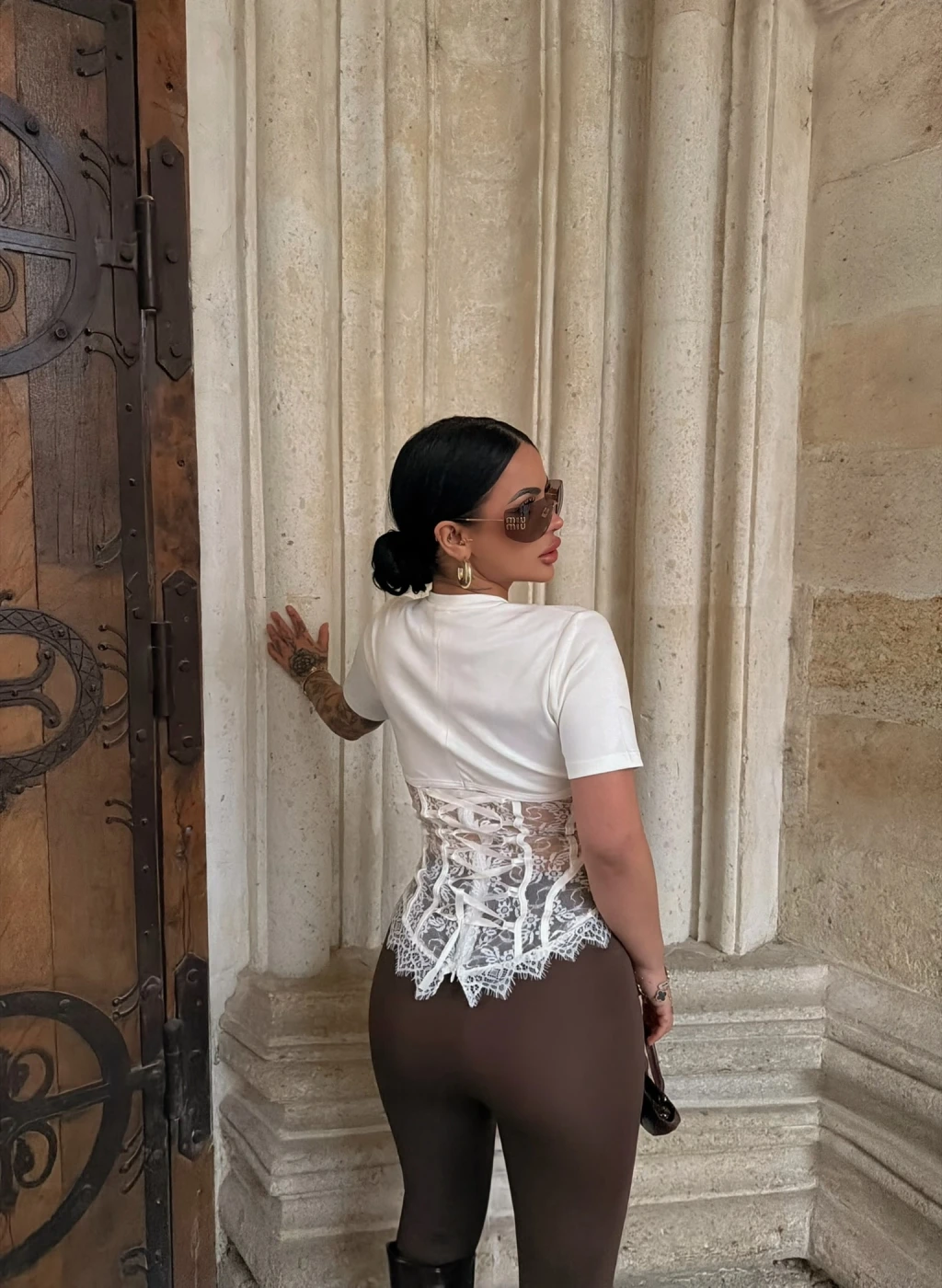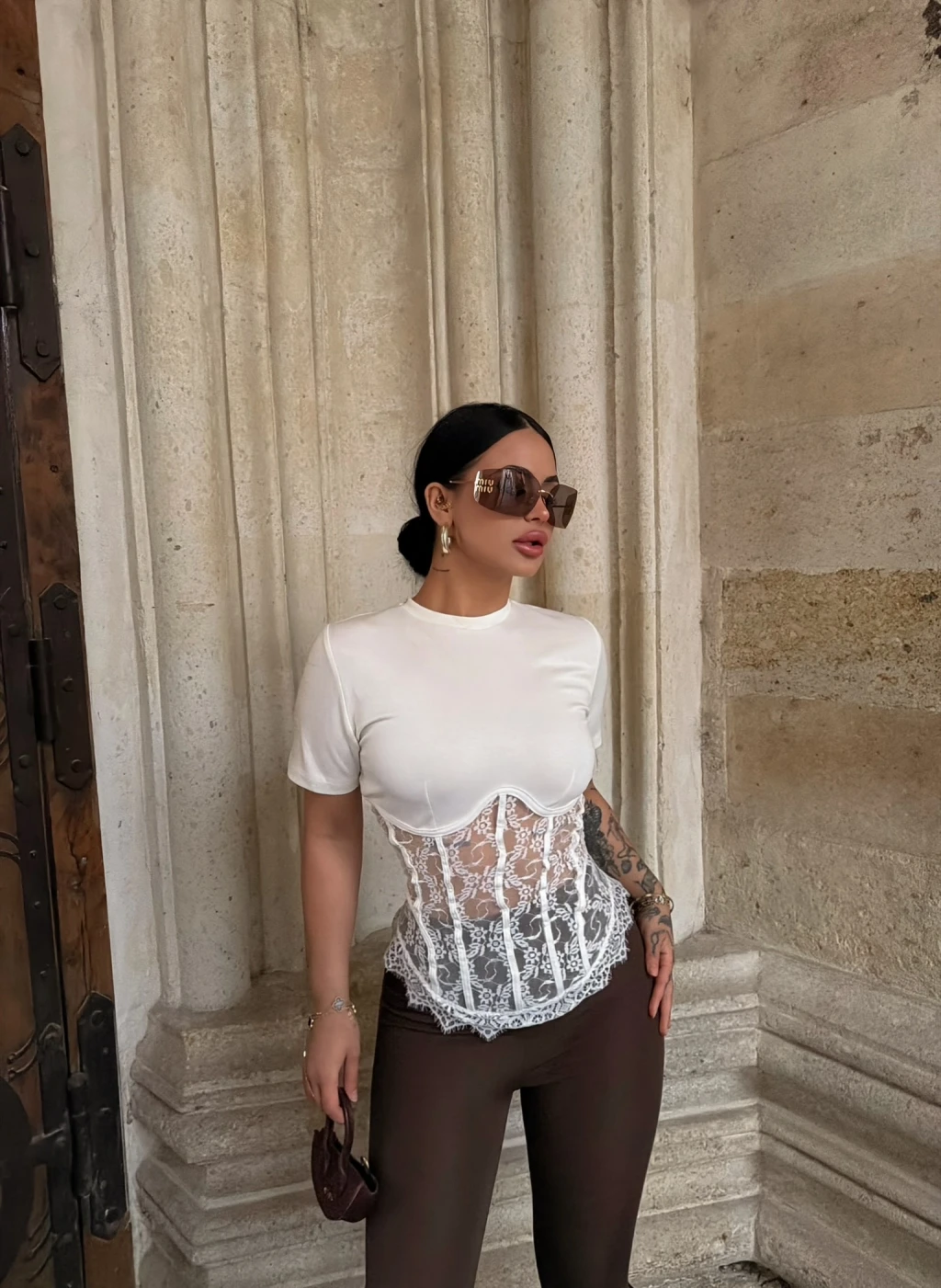 Beyaz Güpürlü Korse Tişört