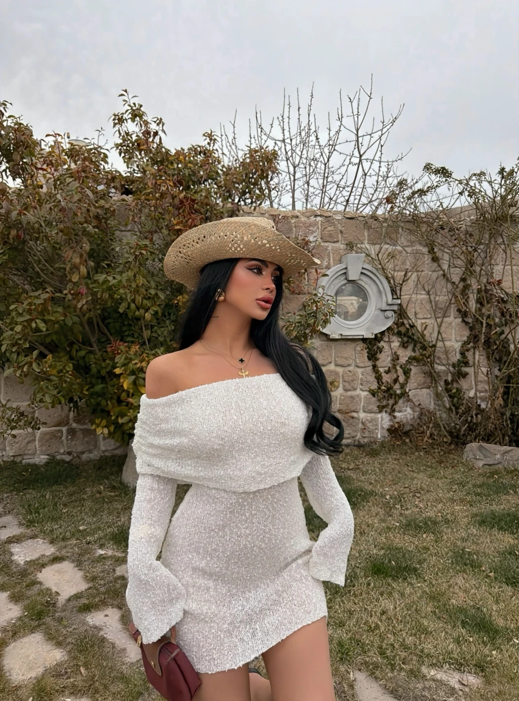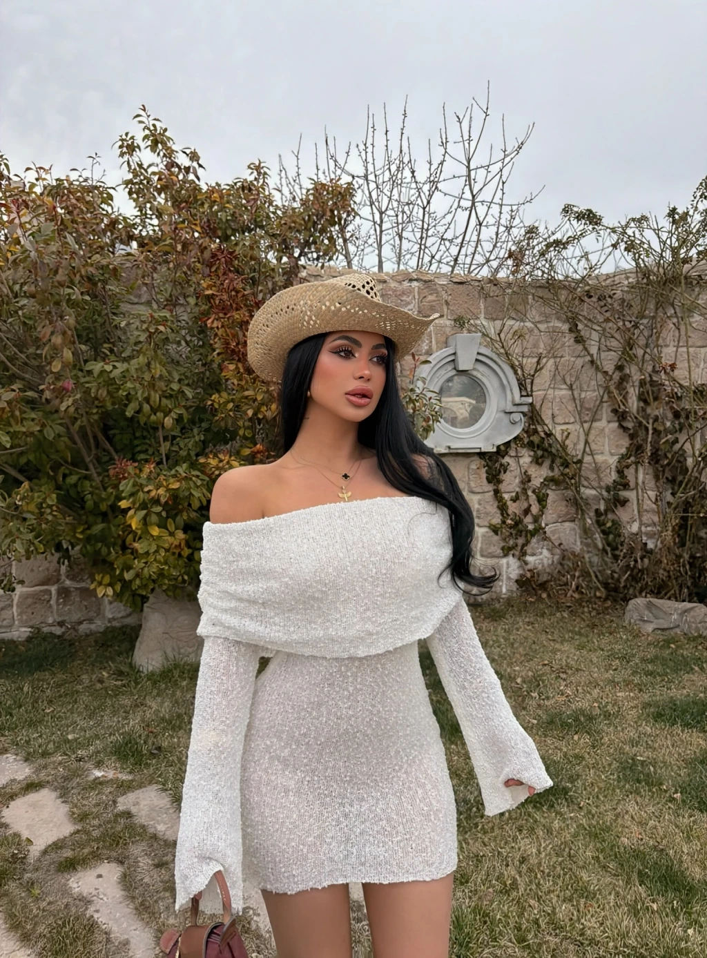 Beyaz Katlamalı Triko Madonna Elbise