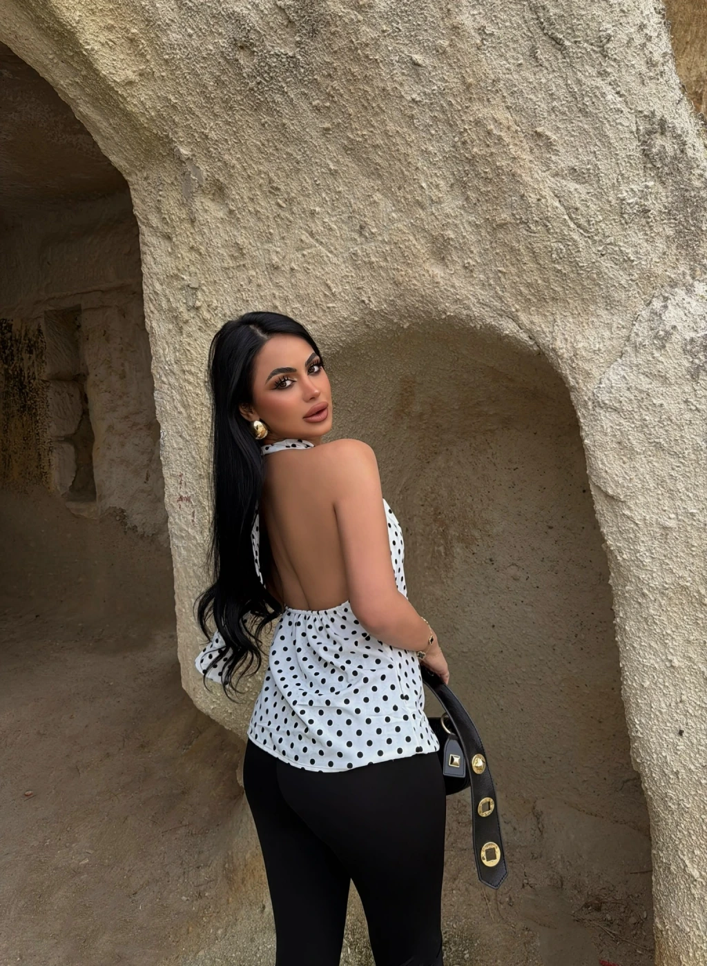 - İnce puantiye deseni, bluza hafif ve zarif bir hava katar.
