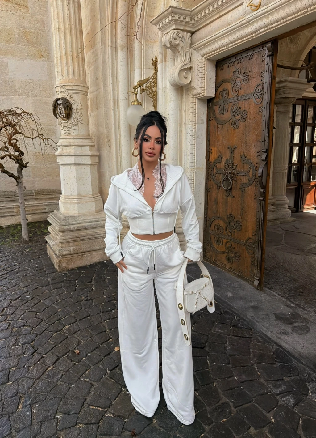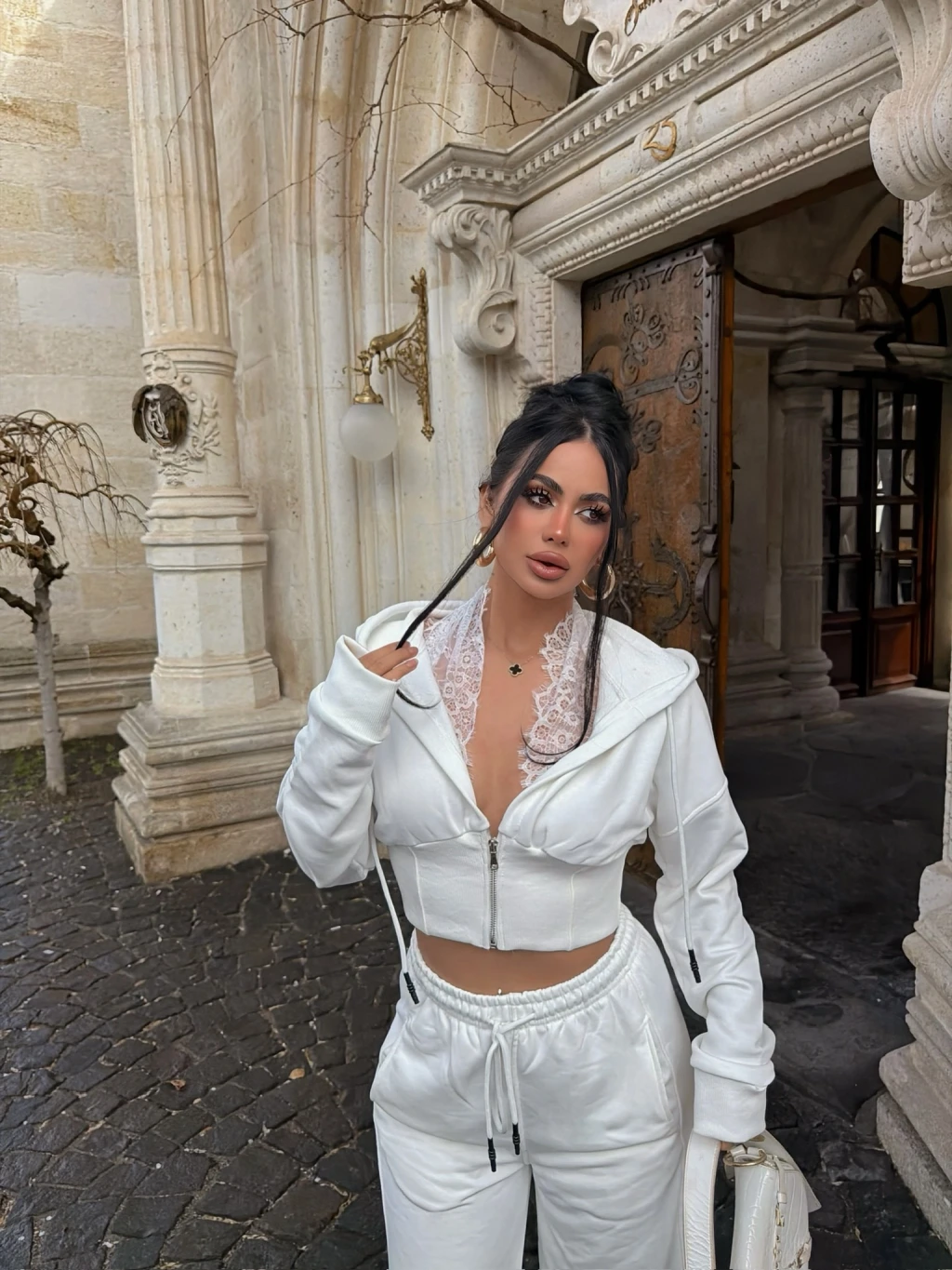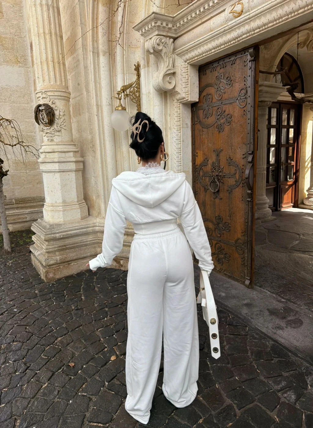 Şıklığı ve konforu bir arada arayanların tercihi olan Kırmızı Butik Yaka Güpürlü Eşofman Takımı, gardırobunuzun vazgeçilmezi olmaya aday!