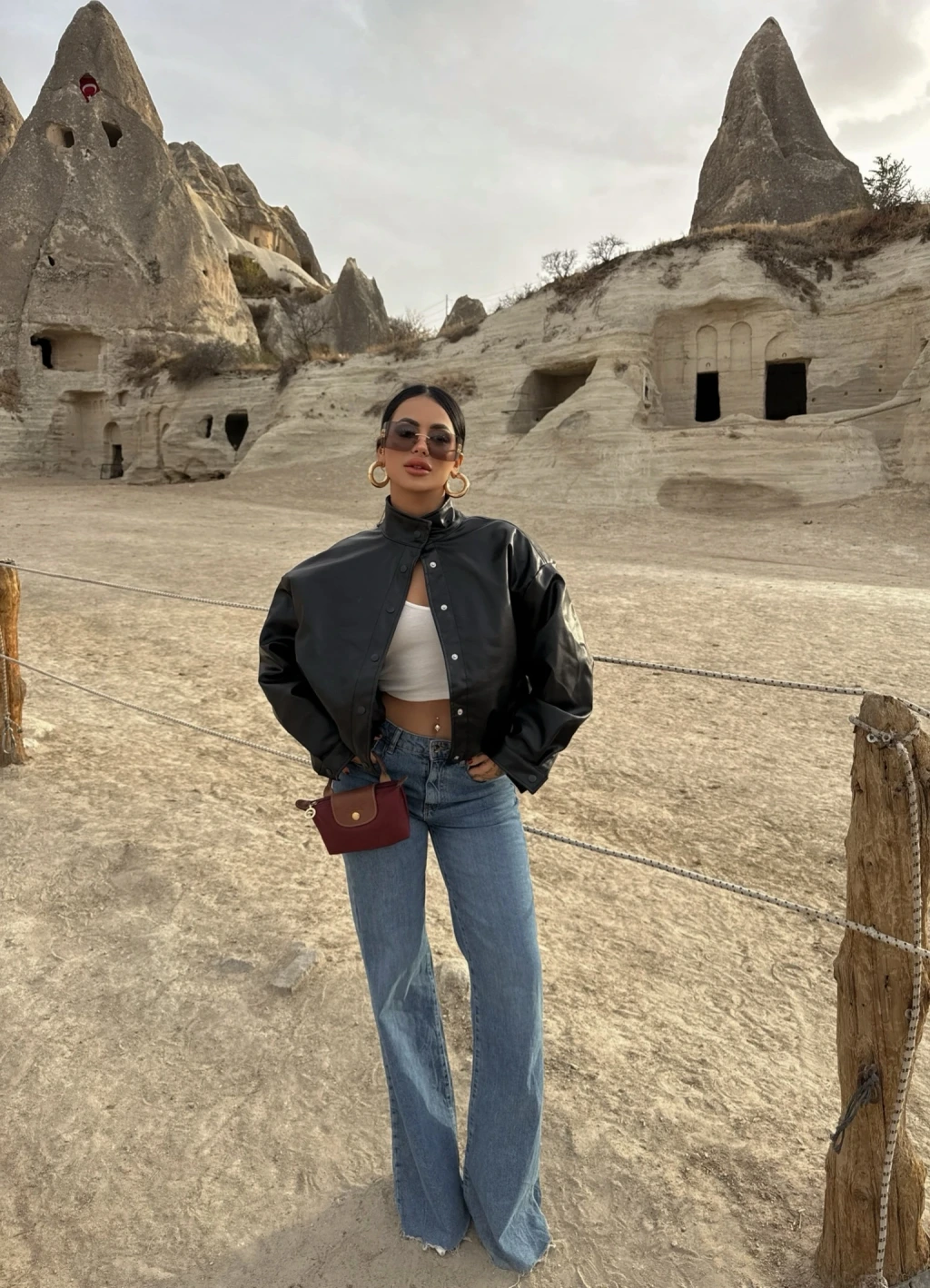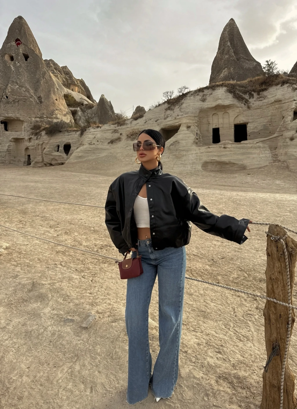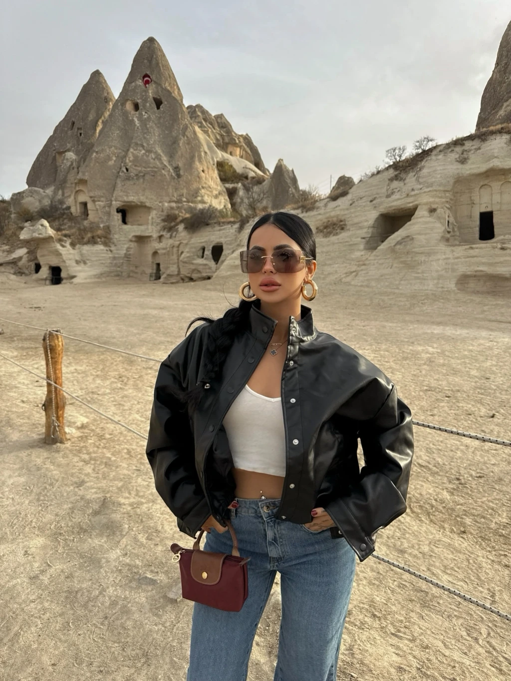Blkout Suni Deri Ceket, şıklığı ve rahatlığı bir arada sunan Kırmızı Butik'in öne çıkan bir tasarımıdır.