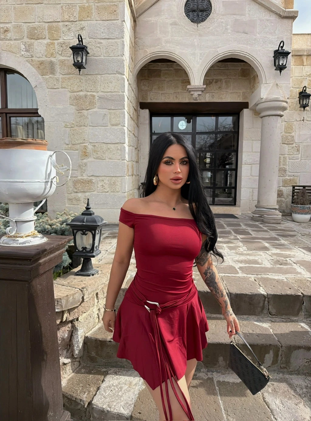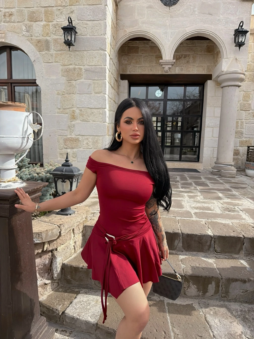 Eğer şıklık ve rahatlığı bir arada arıyorsanız, Kırmızı Butik Eteği Aksesuarlı Straplez Elbise tam da size göre!