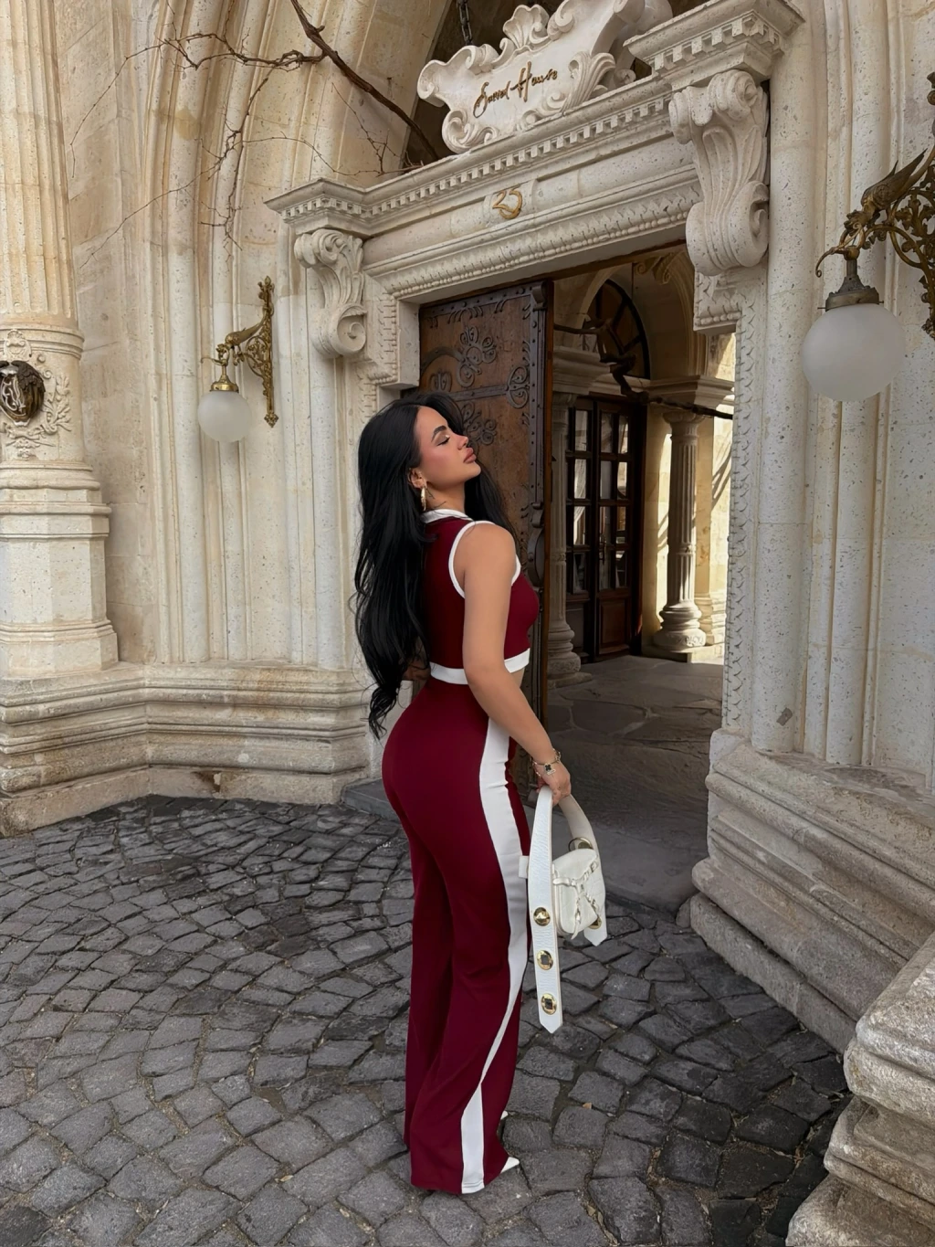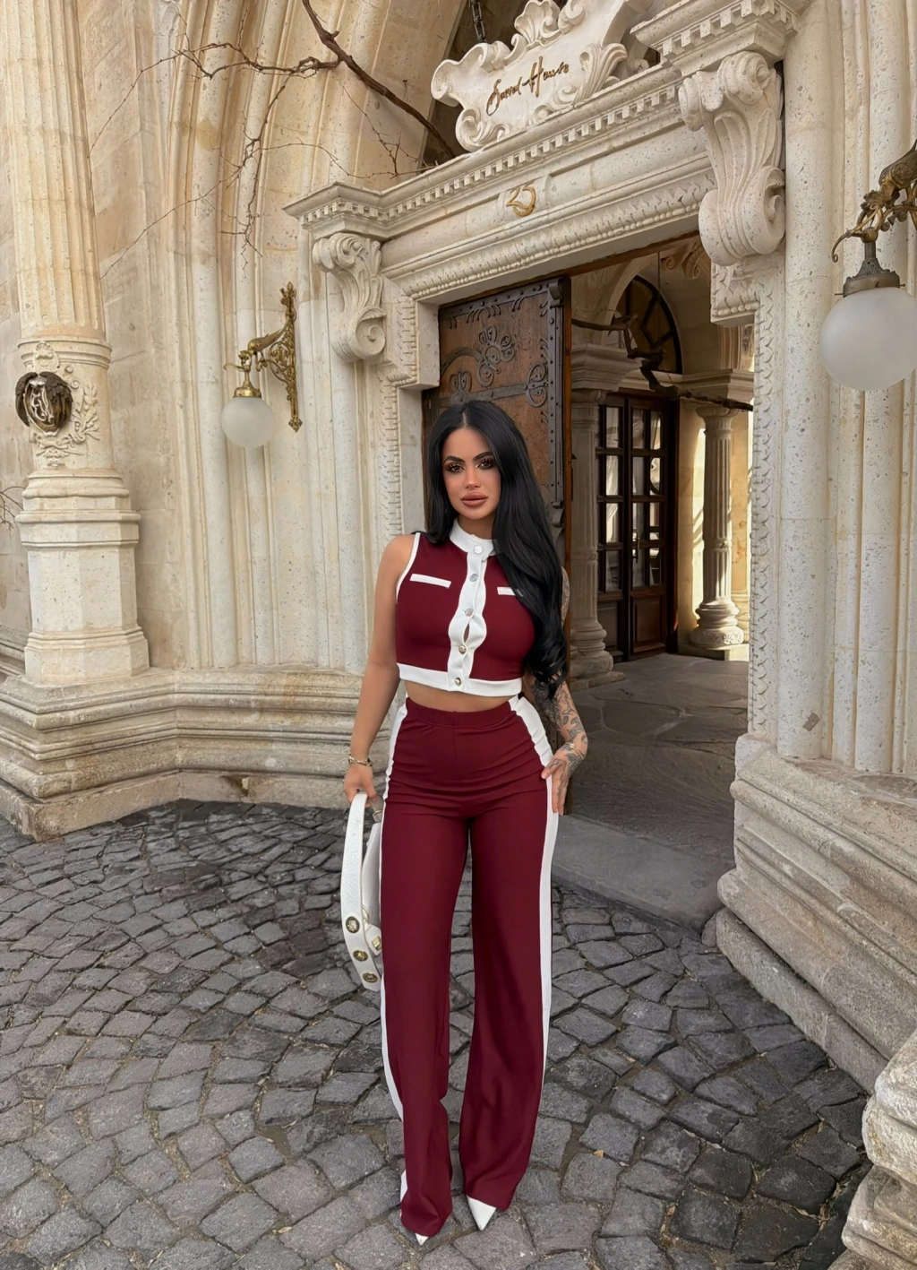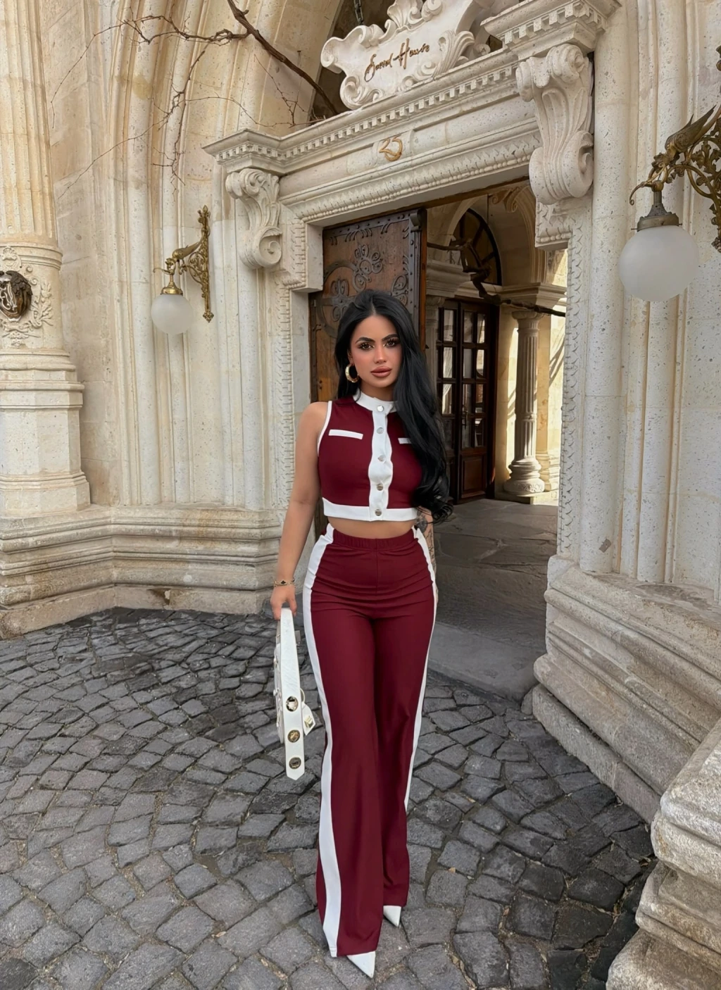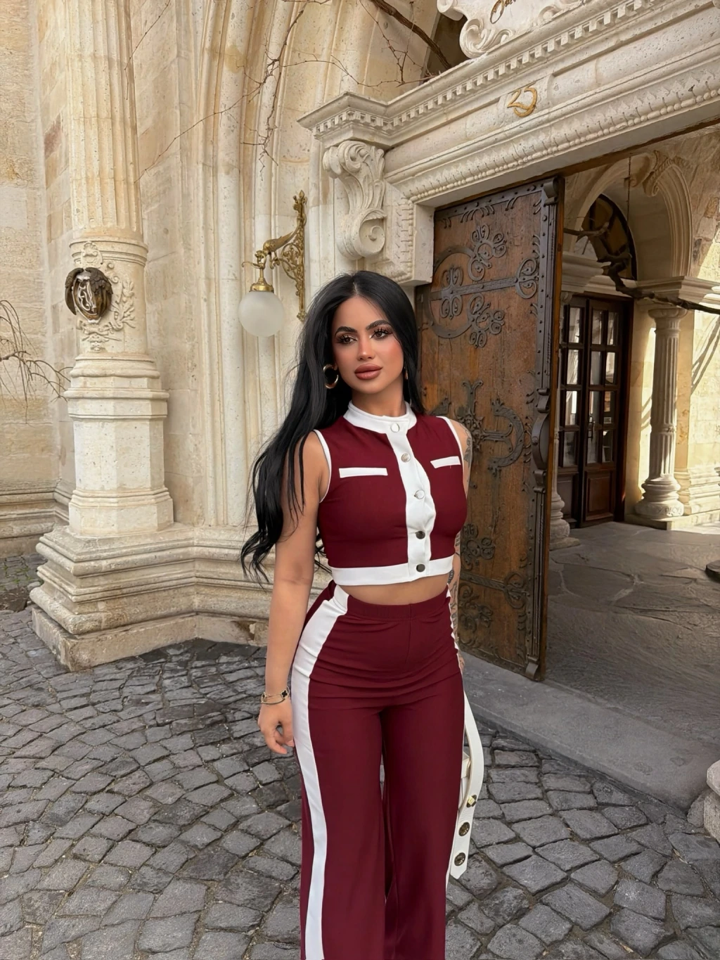 Bordo Yaka Aksesuarlı İkili Takım