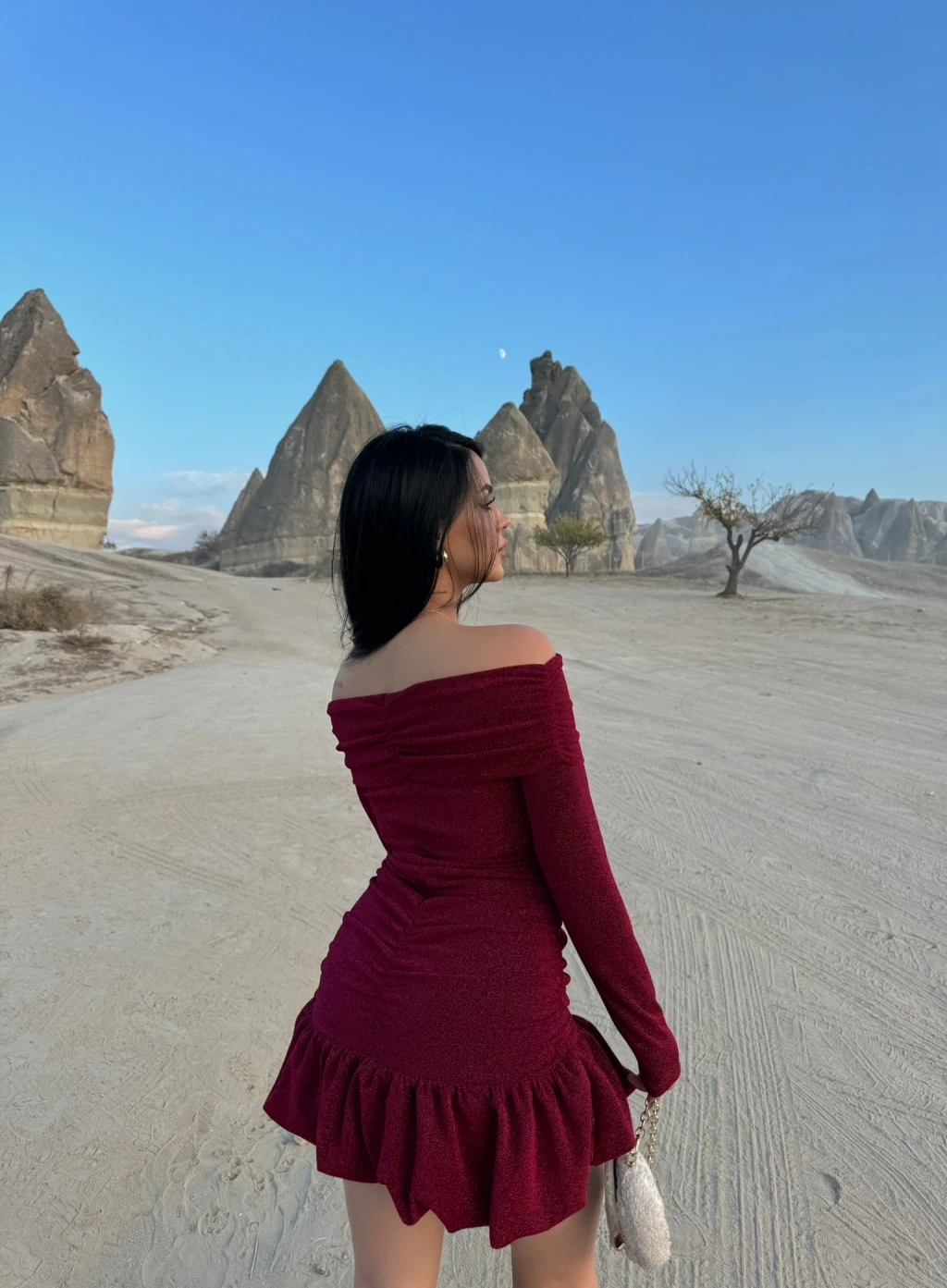 Kırmızı Butik'in göz alıcı ve şık Simli Balon Etek Elbisesi ile tarzınızı konuşturun. Bu mini elbise, özel davetlerde veya gece eğlencelerinde şıklığınızı ön plana çıkaracak.