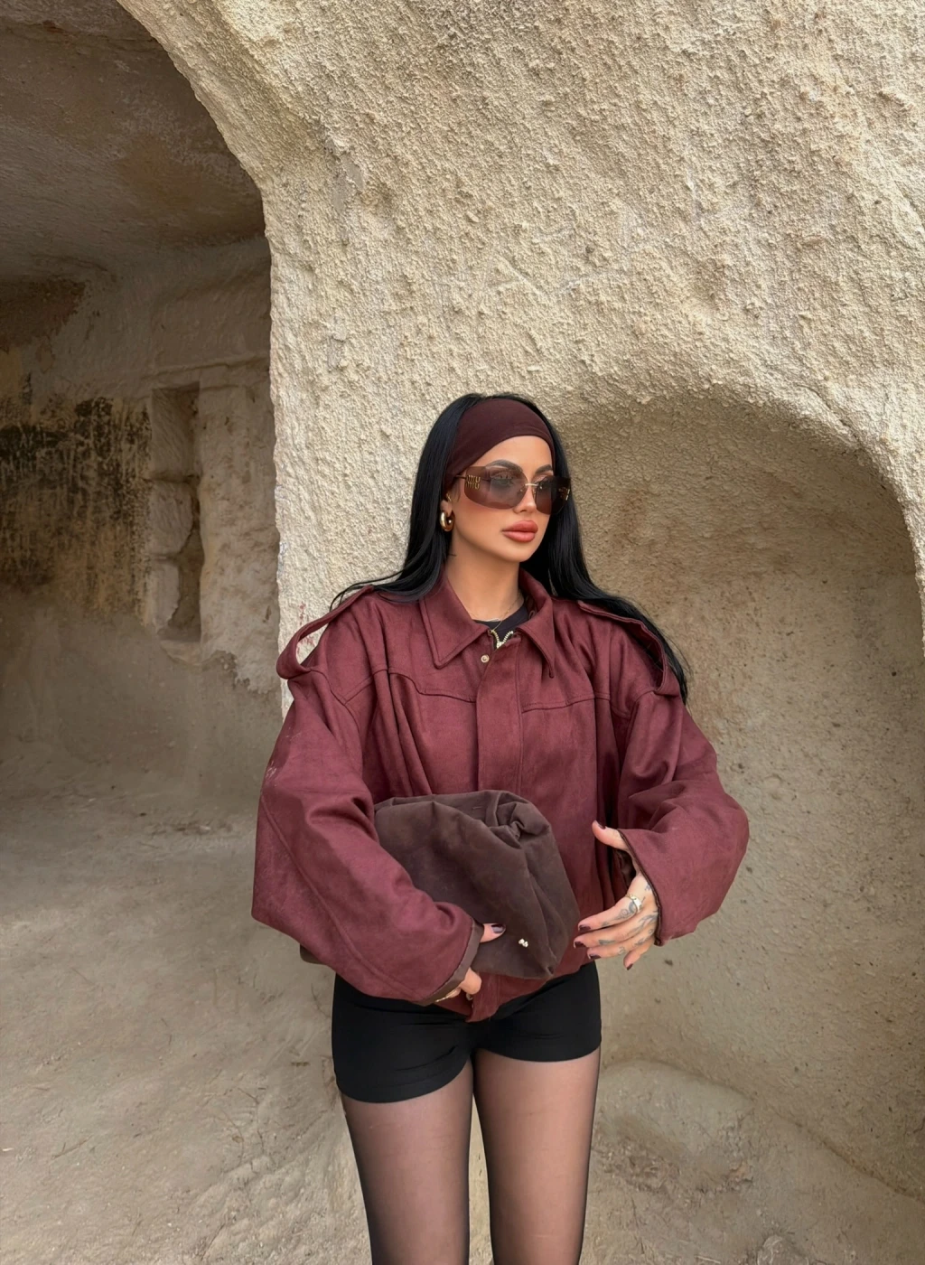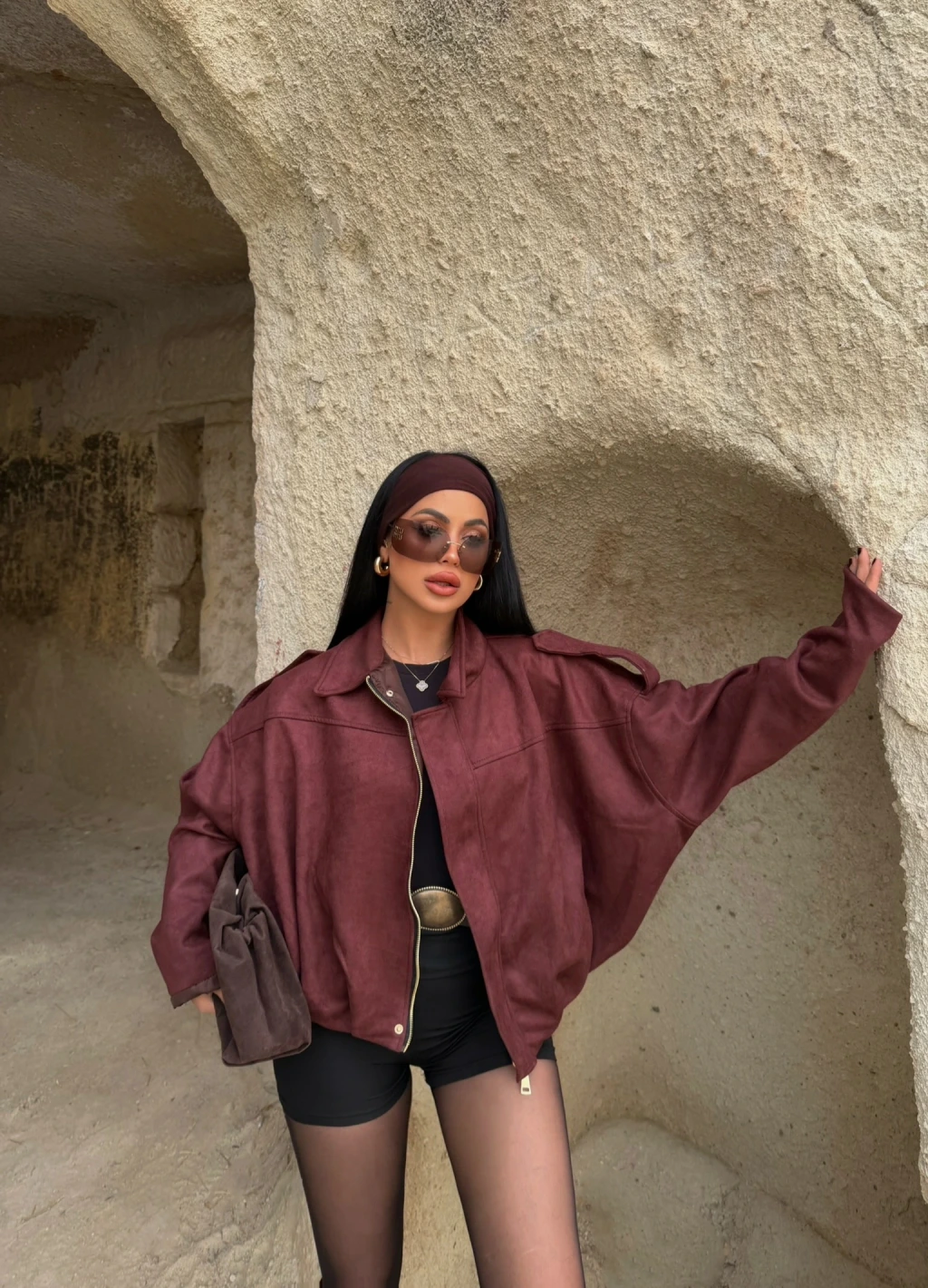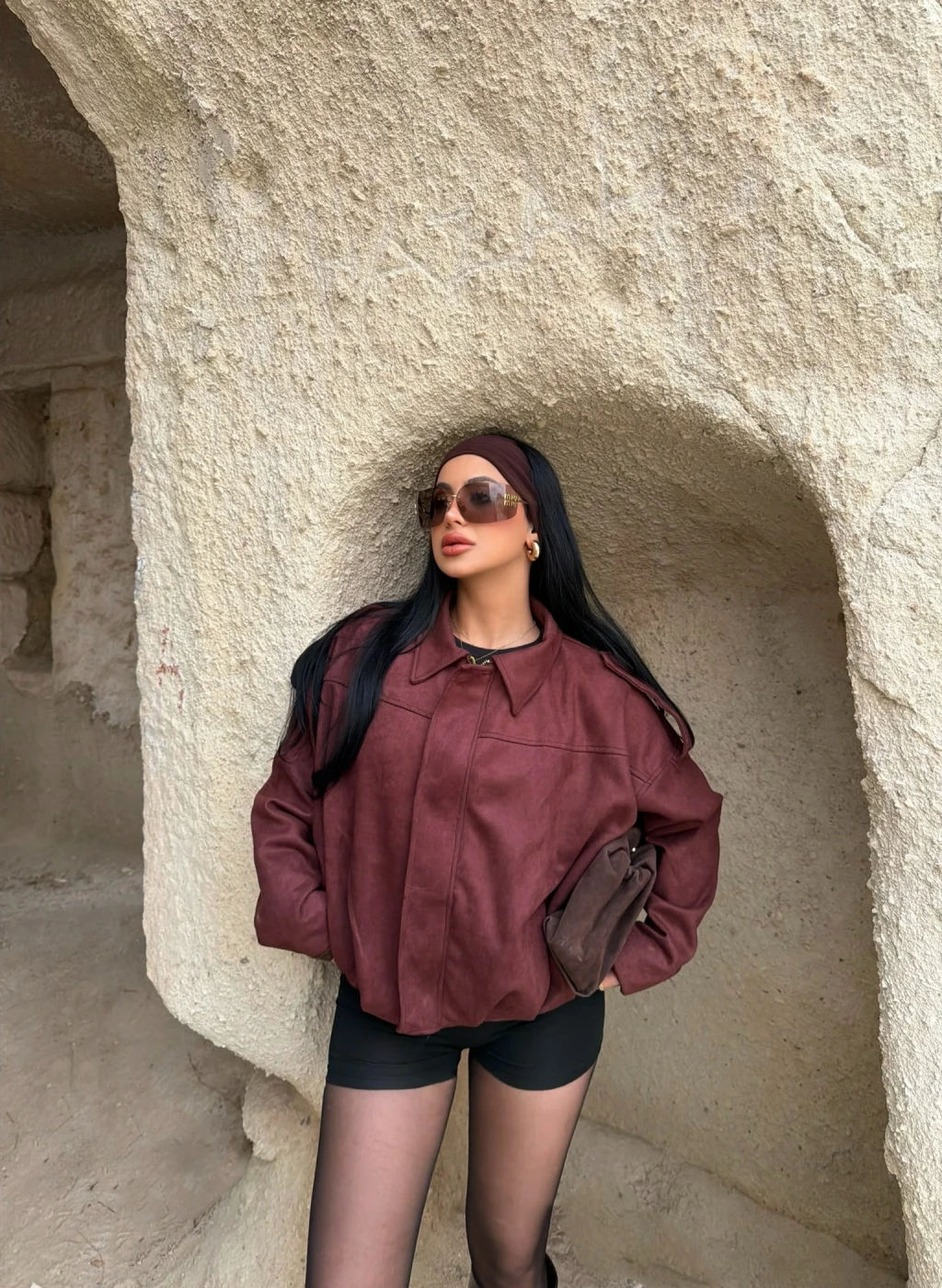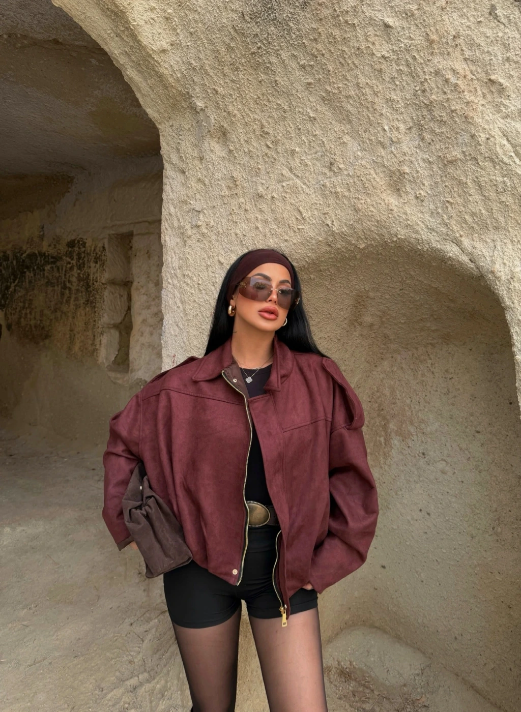 Vizon Bel Lastikli Kaşe Bomber Ceket