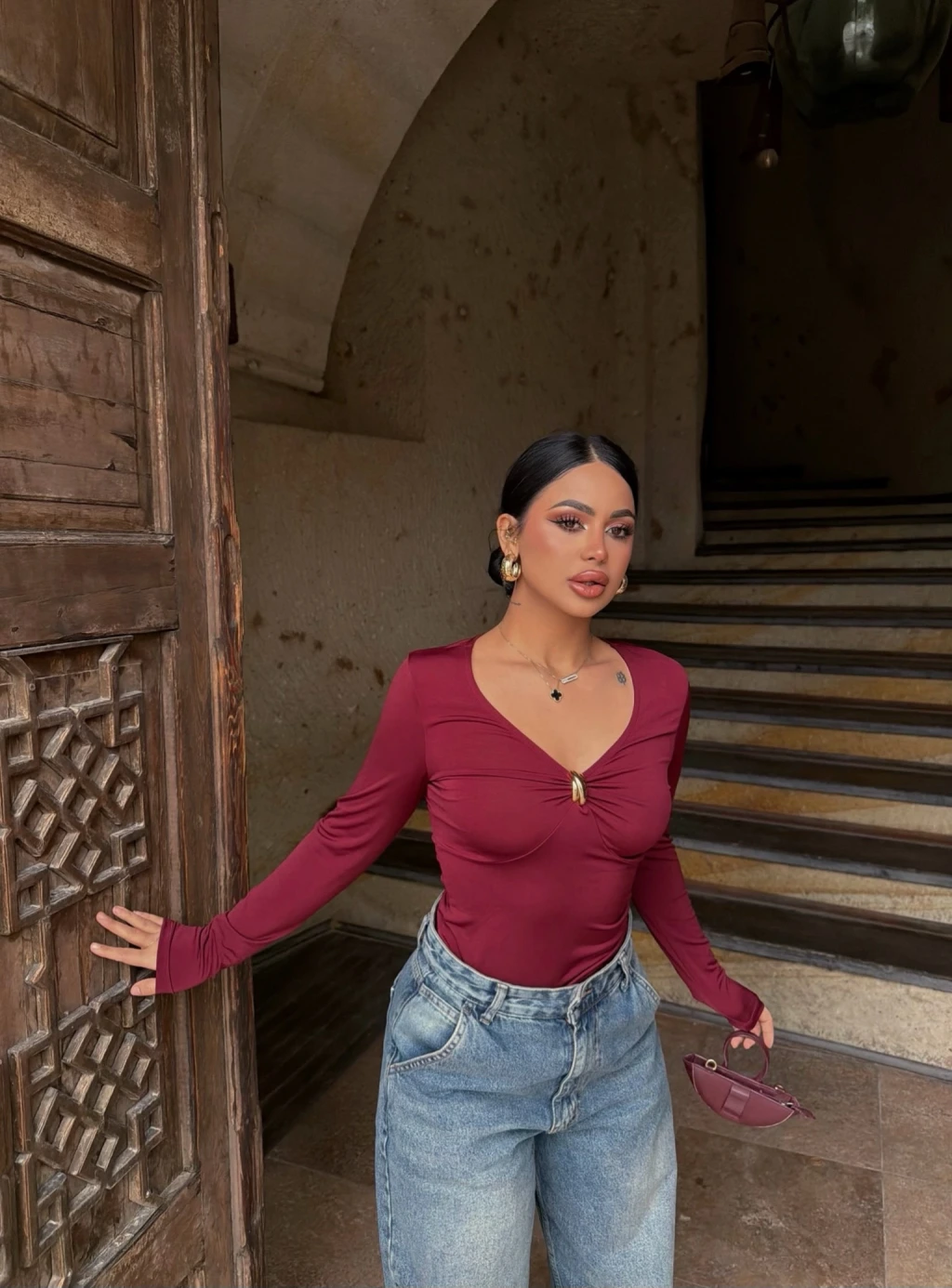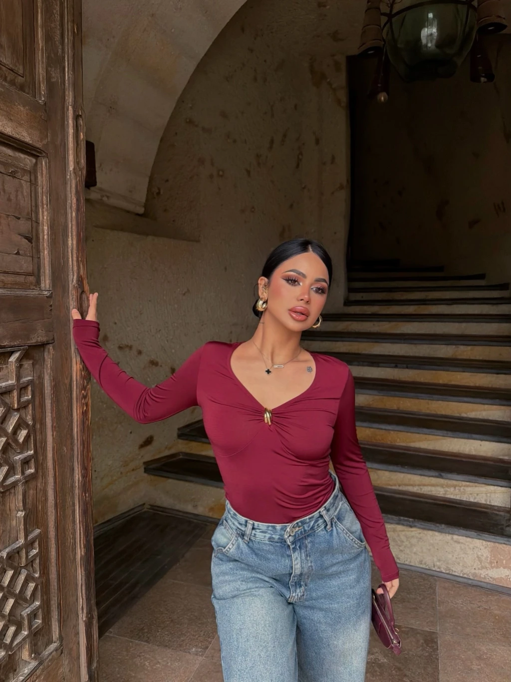 Kaliteli kumaşı ve özenli dikişi ile uzun ömürlü kullanım vaat eden Kırmızı Butik V Yaka Aksesuarlı Bluz'u hemen sepetinize ekleyin, şıklığınızı ön plana çıkarın!