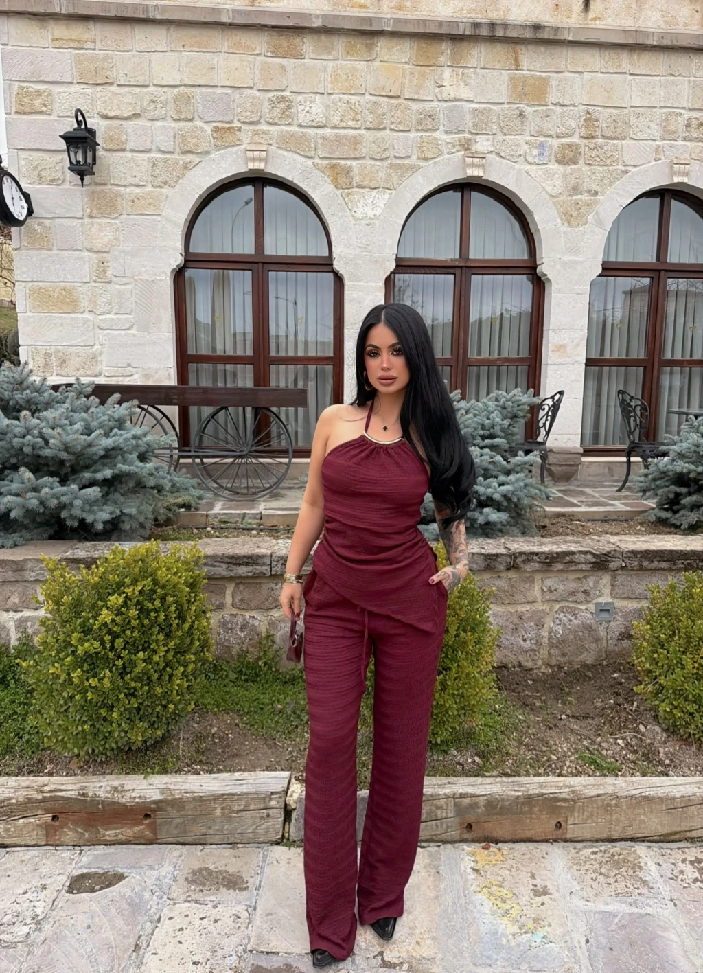 Bordo Yaka Aksesuarlı İkili Takım ile tarzınızı konuşturun, kendinizi özel ve şık hissedin!