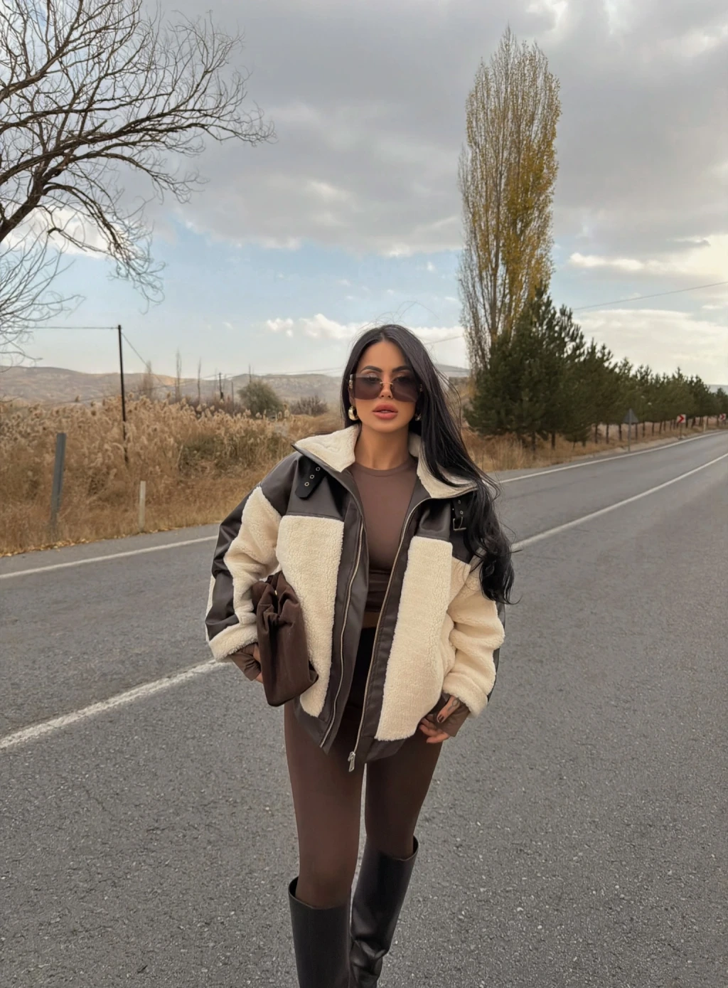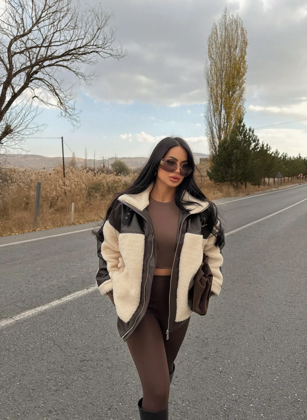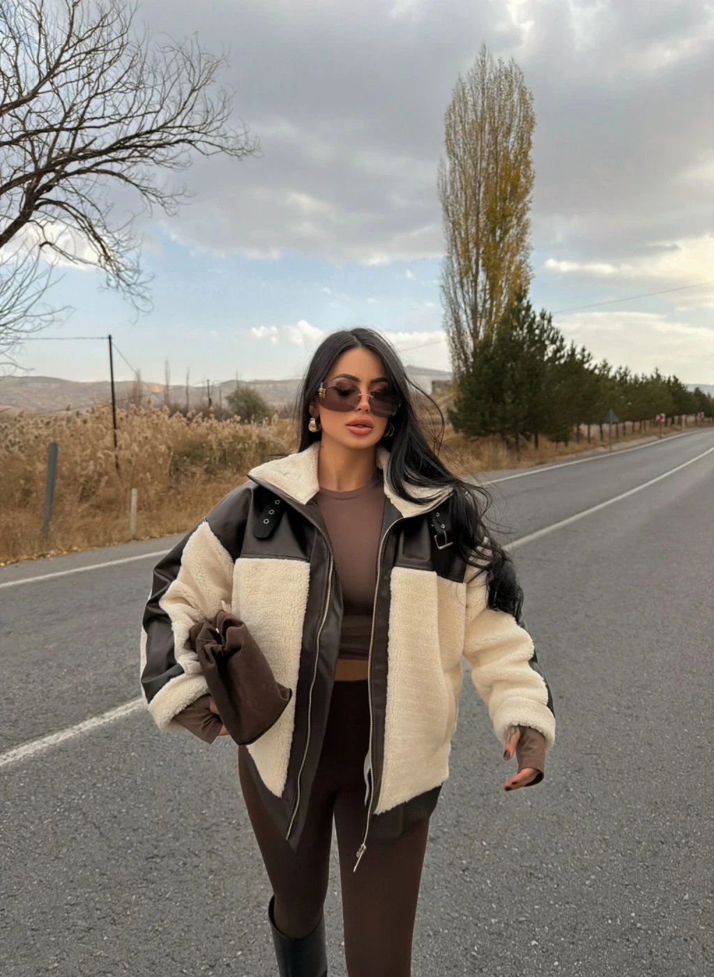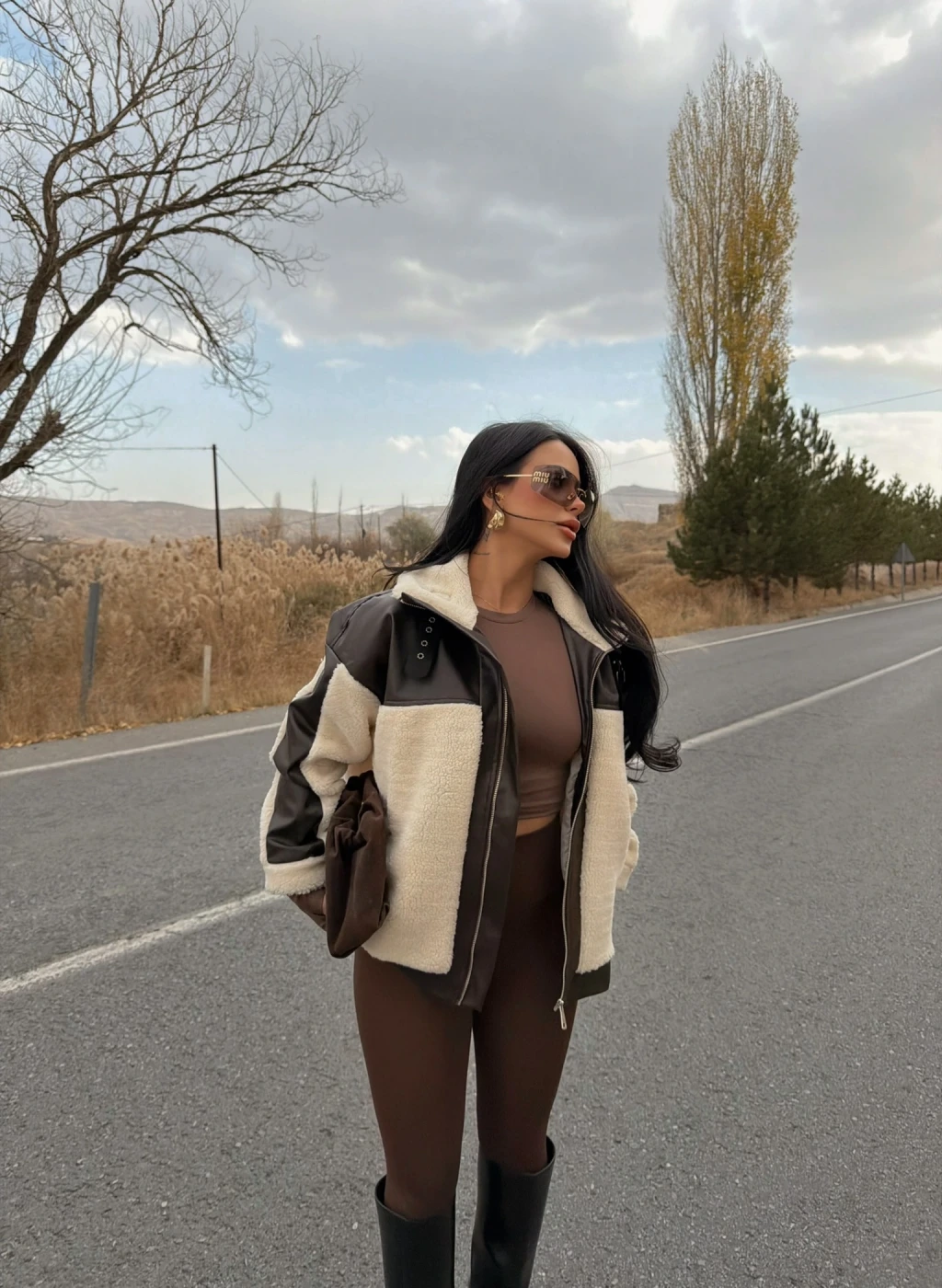 Şıklık ve kaliteyi bir arada sunan Kırmızı Butik'in Deri Detaylı Garnili Mont'u ile tarzınızı ön plana çıkarın.