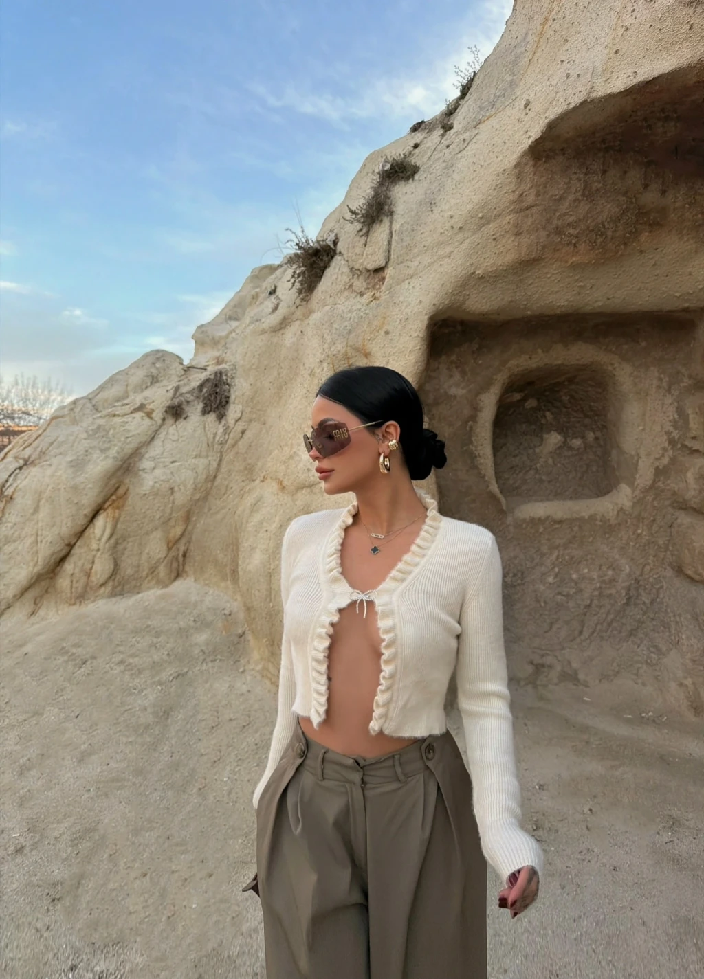 • V yakalı ve düğmeli olan hırka, farklı kombin seçenekleri sunar.