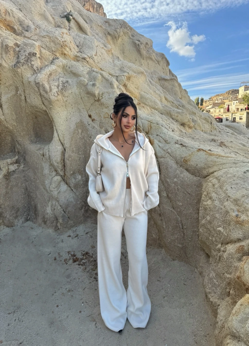 Kırmızı Butik'in şıklık ve rahatlığı bir arada sunan Çift Fermuarlı Triko Takımı, gardırobunuzun vazgeçilmezi olmaya aday!