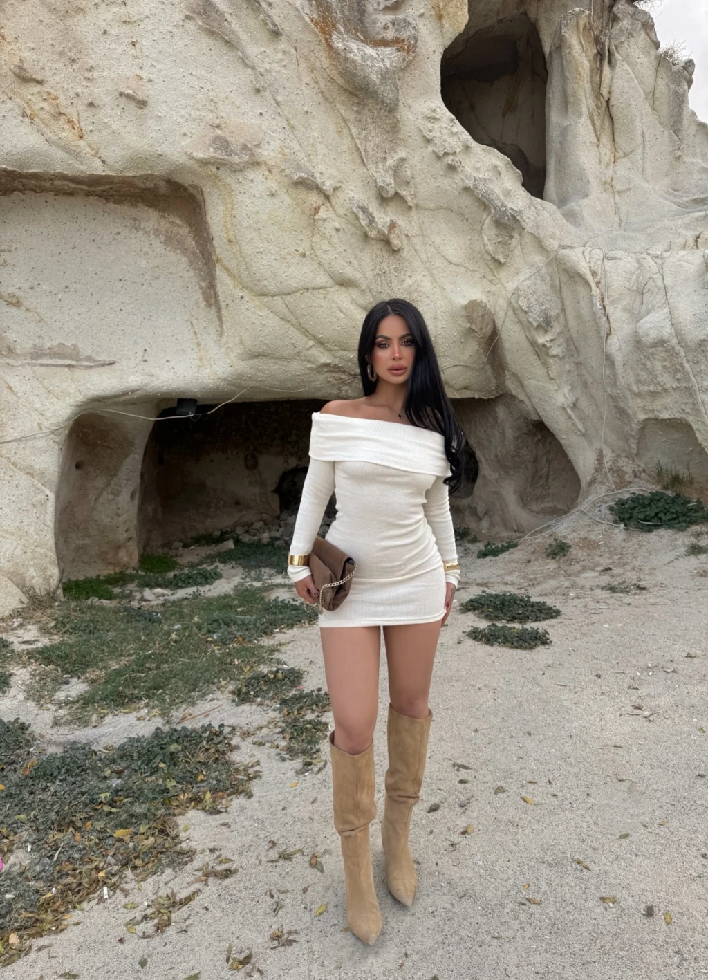 Ekru Katlamalı Kaşkorse Madonna Elbise