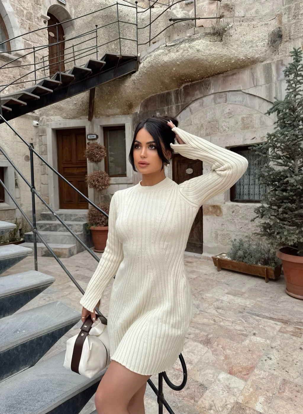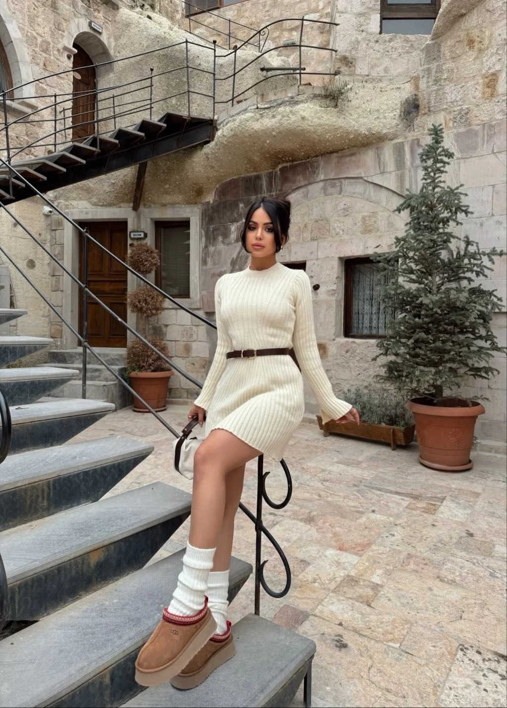 Ribbed Triko Elbise, şıklık arayan kadınların gardırobunda vazgeçilmez bir parça olmaya aday!