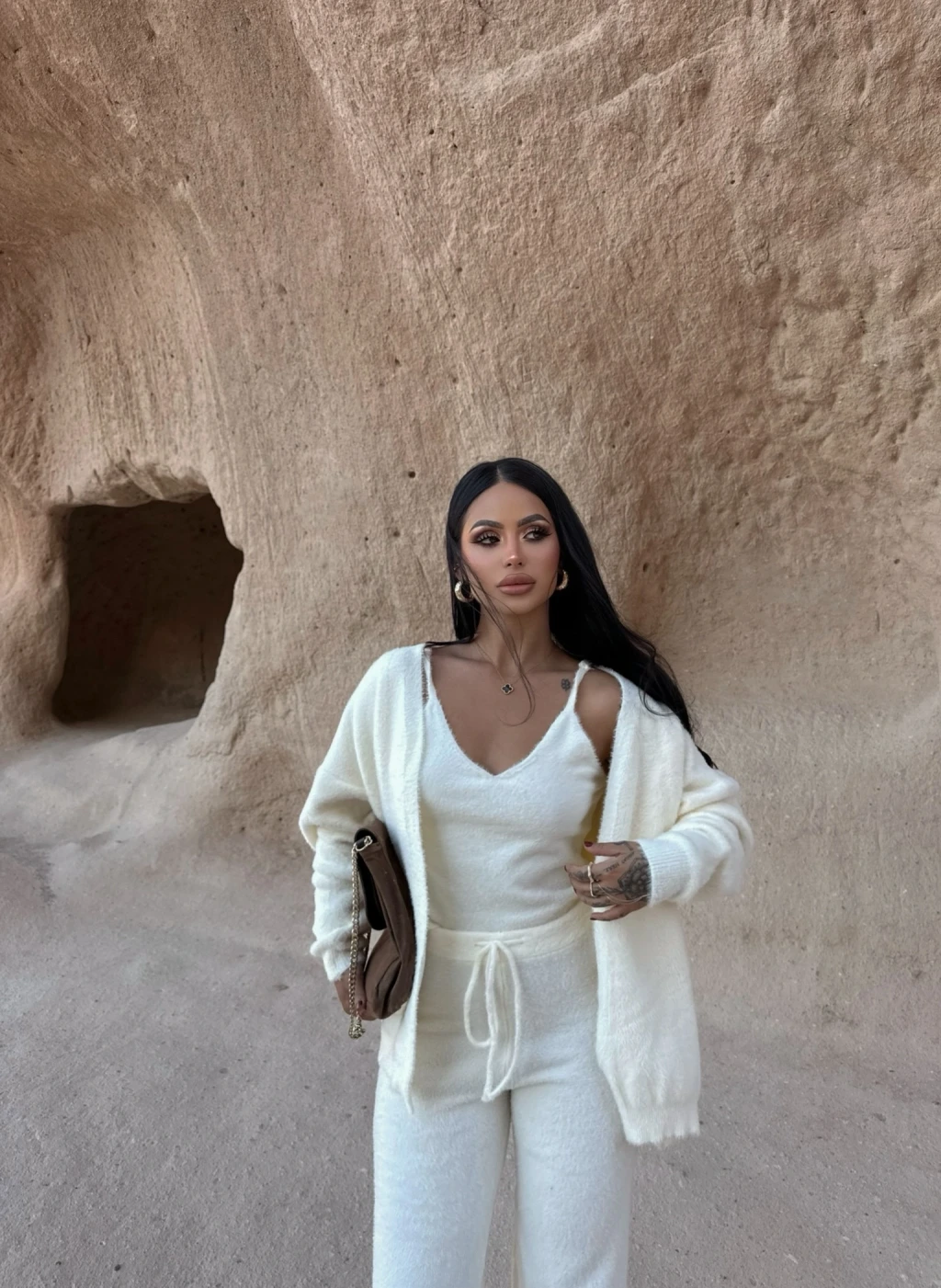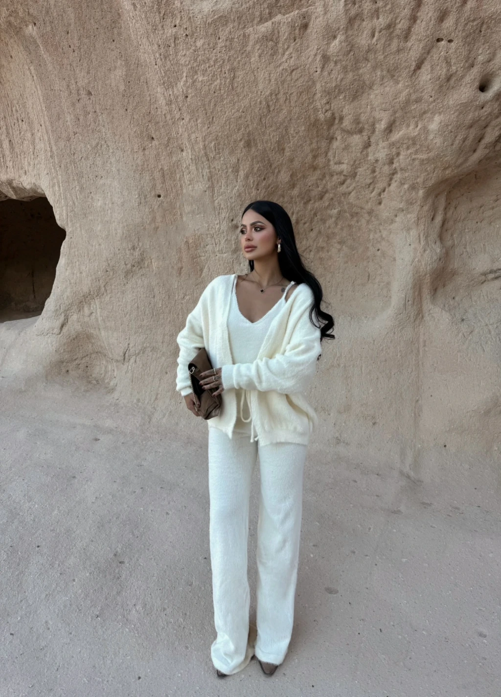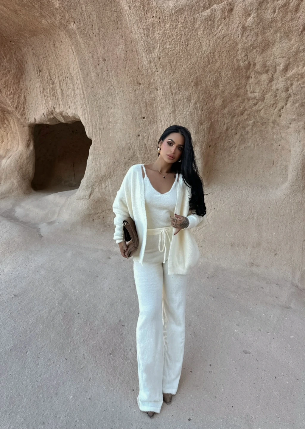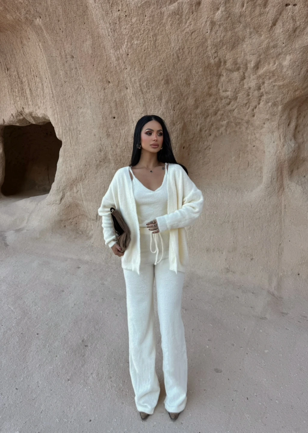 Ekru Yumoş Triko Üçlü Takım