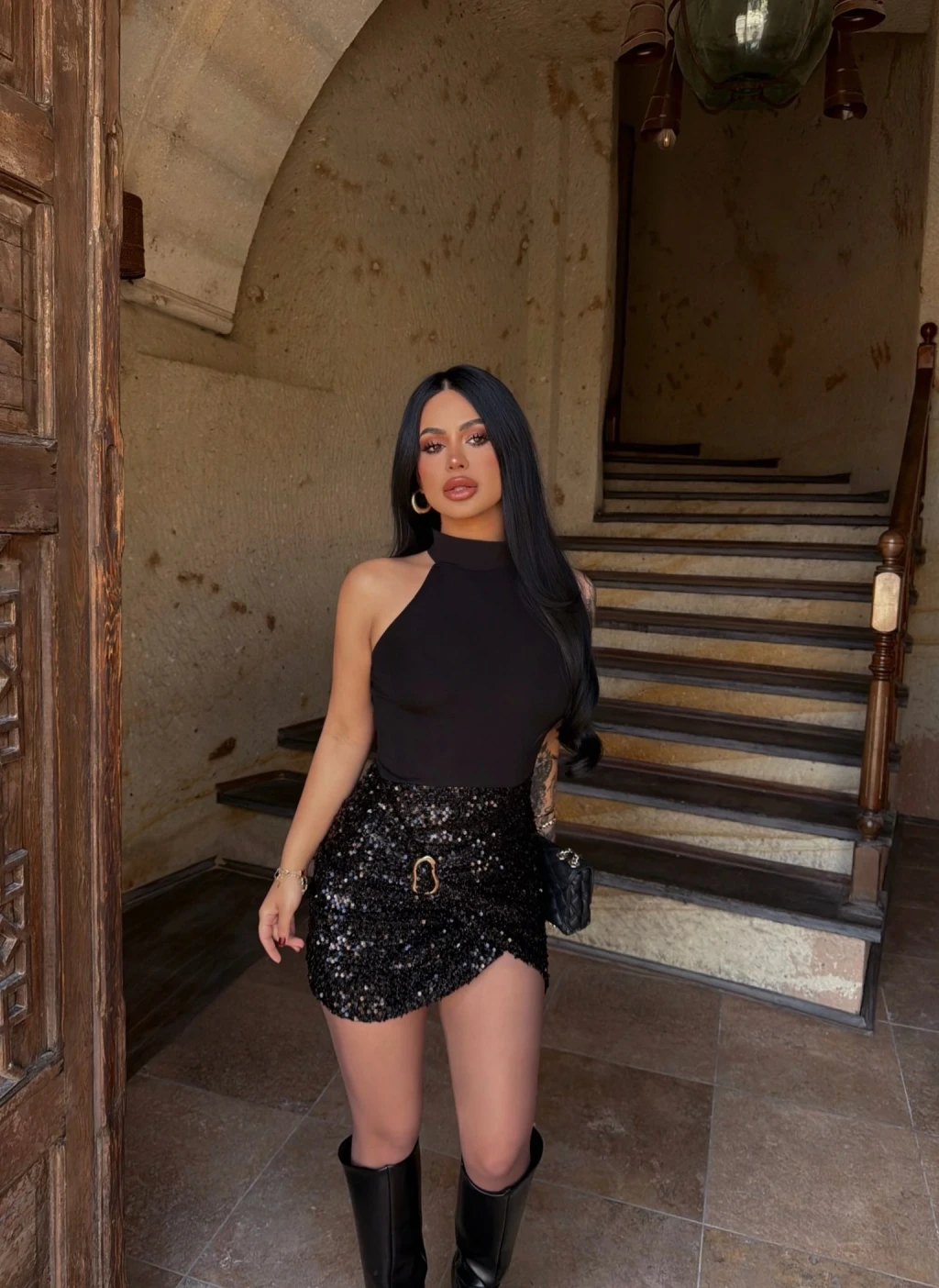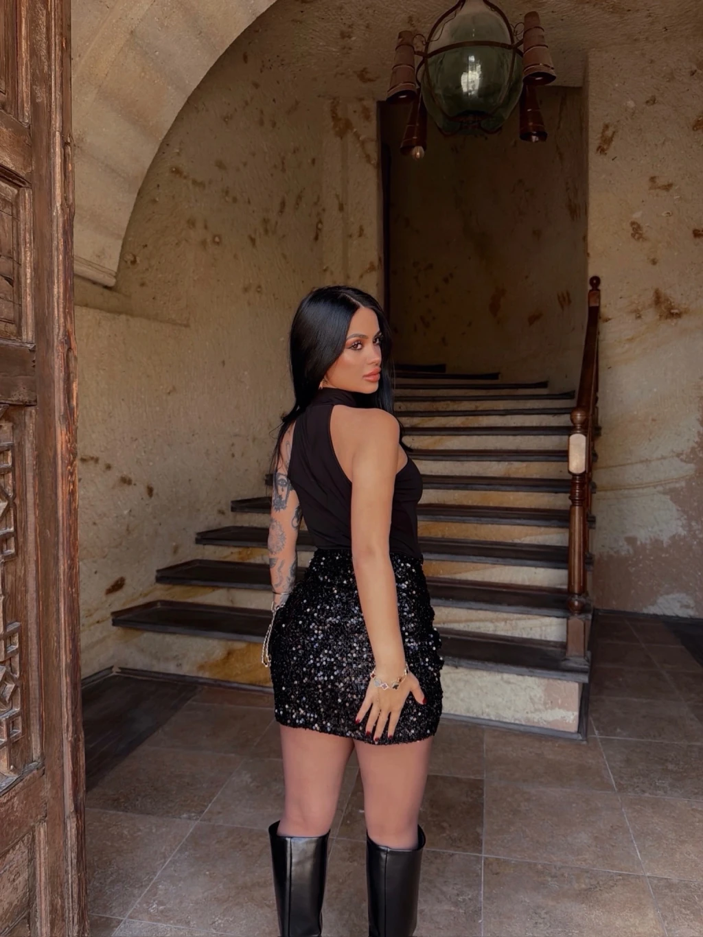 Eteği Payetli Balıkçı Yaka Elbise, şıklığı ve zarafeti bir araya getiriyor. Kırmızı Butik'in özenle tasarladığı bu elbise, mini kesimiyle dikkat çekiyor.