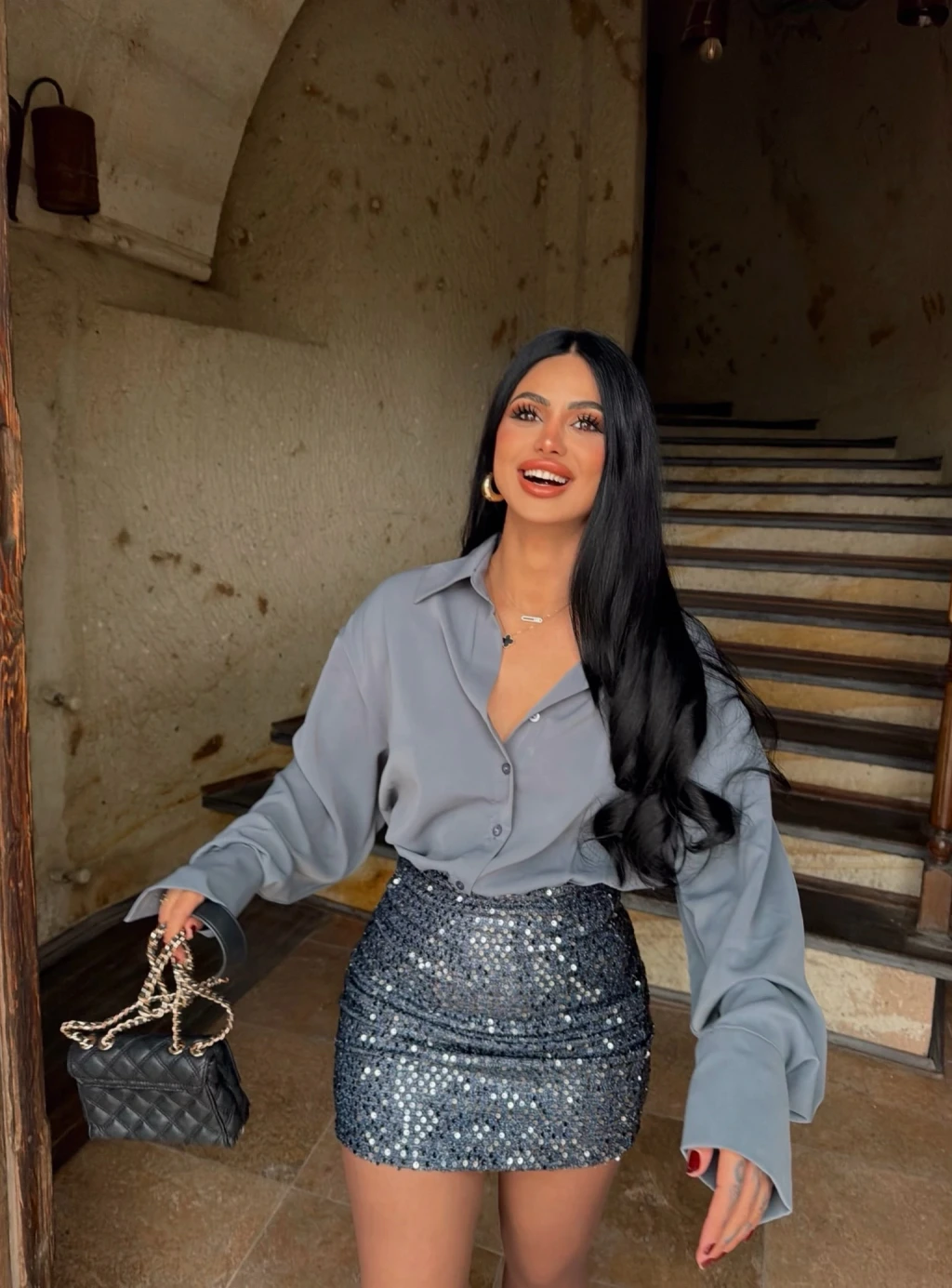Kırmızı Butik'in şık ve dikkat çekici tasarımıyla öne çıkan Payetli Gömlek Elbise, gardırobunuzun vazgeçilmezi olmaya aday! Hem şık davetlerde hem de özel günlerde şıklığınızı konuşturacak bu mini elbise, stilinize şıklık ve zarafet katacak.