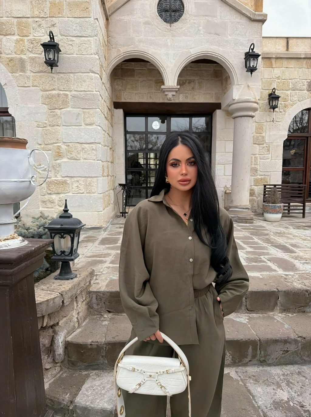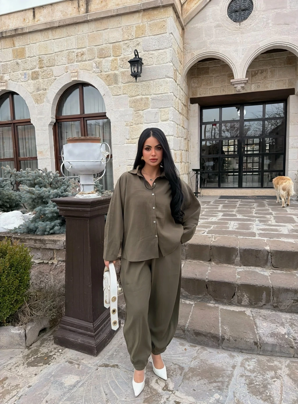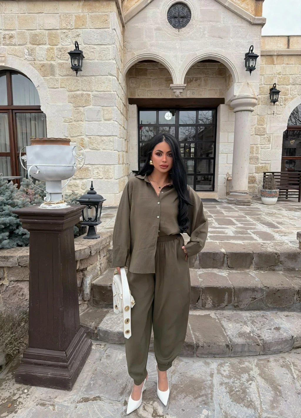 Haki Modal Gömlek Pantolon İkili Takım