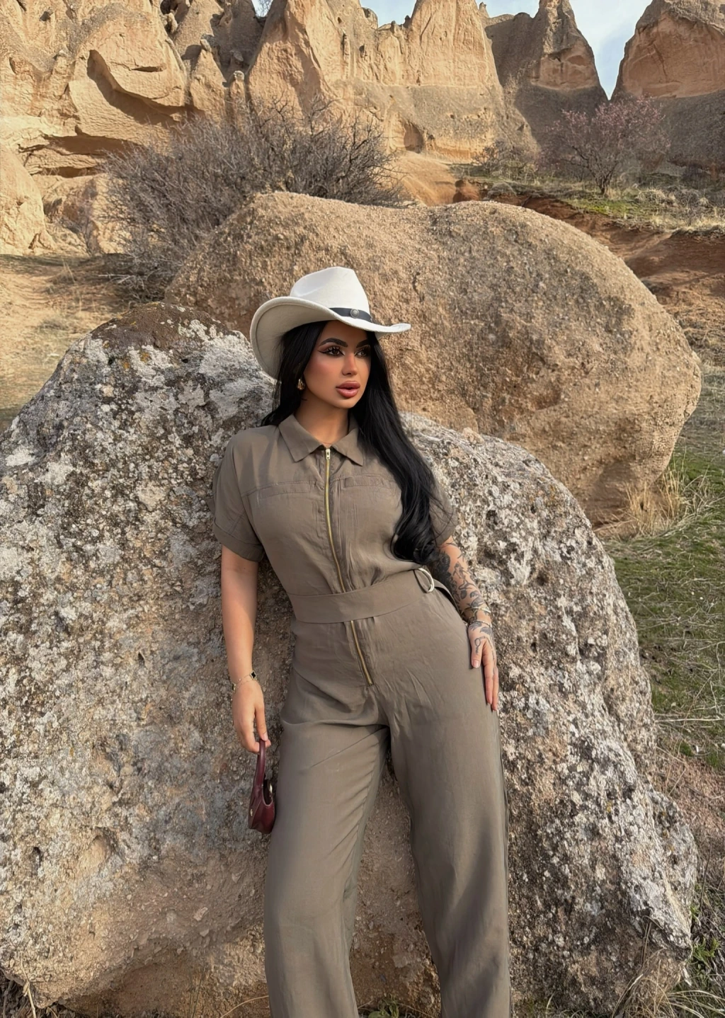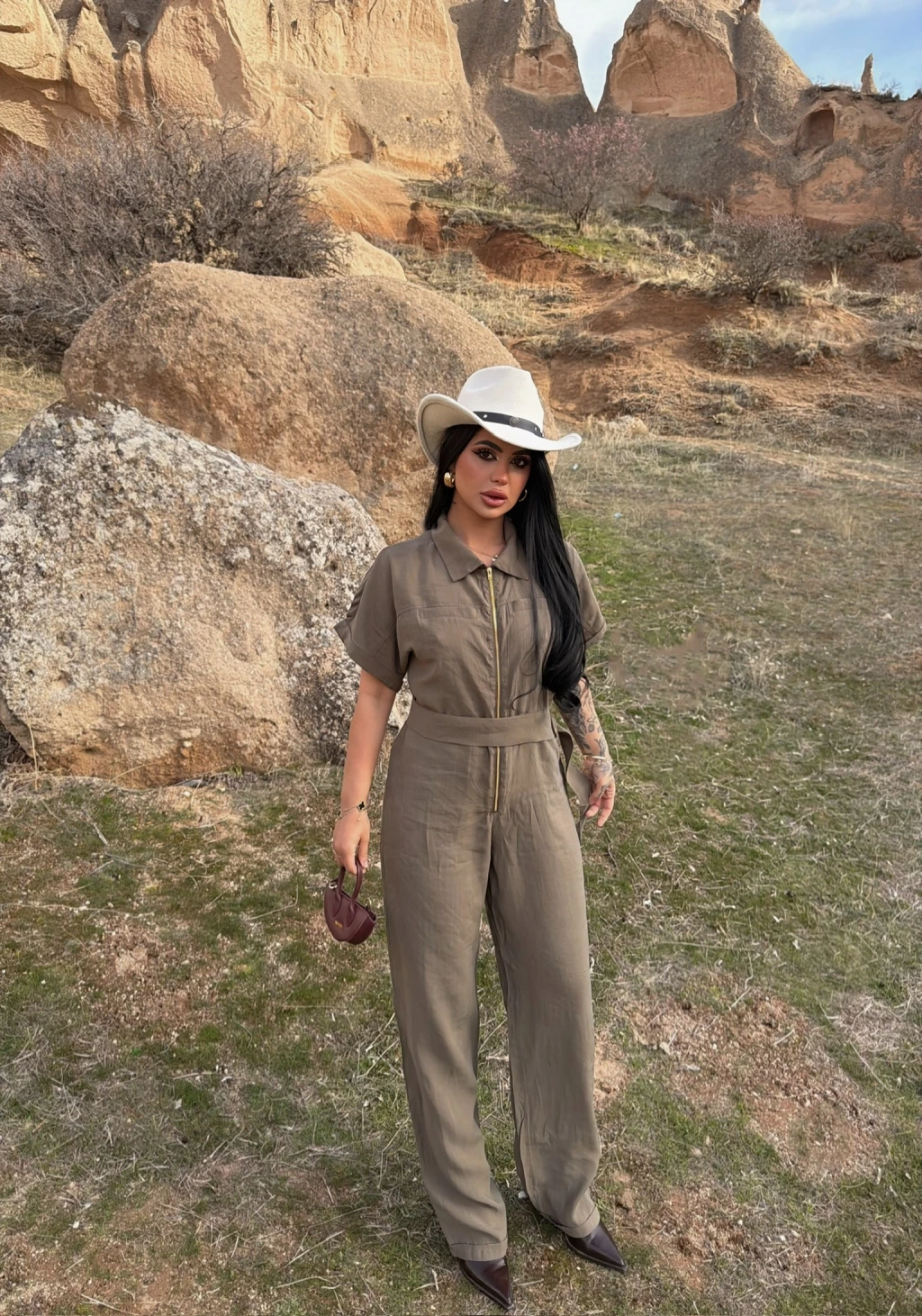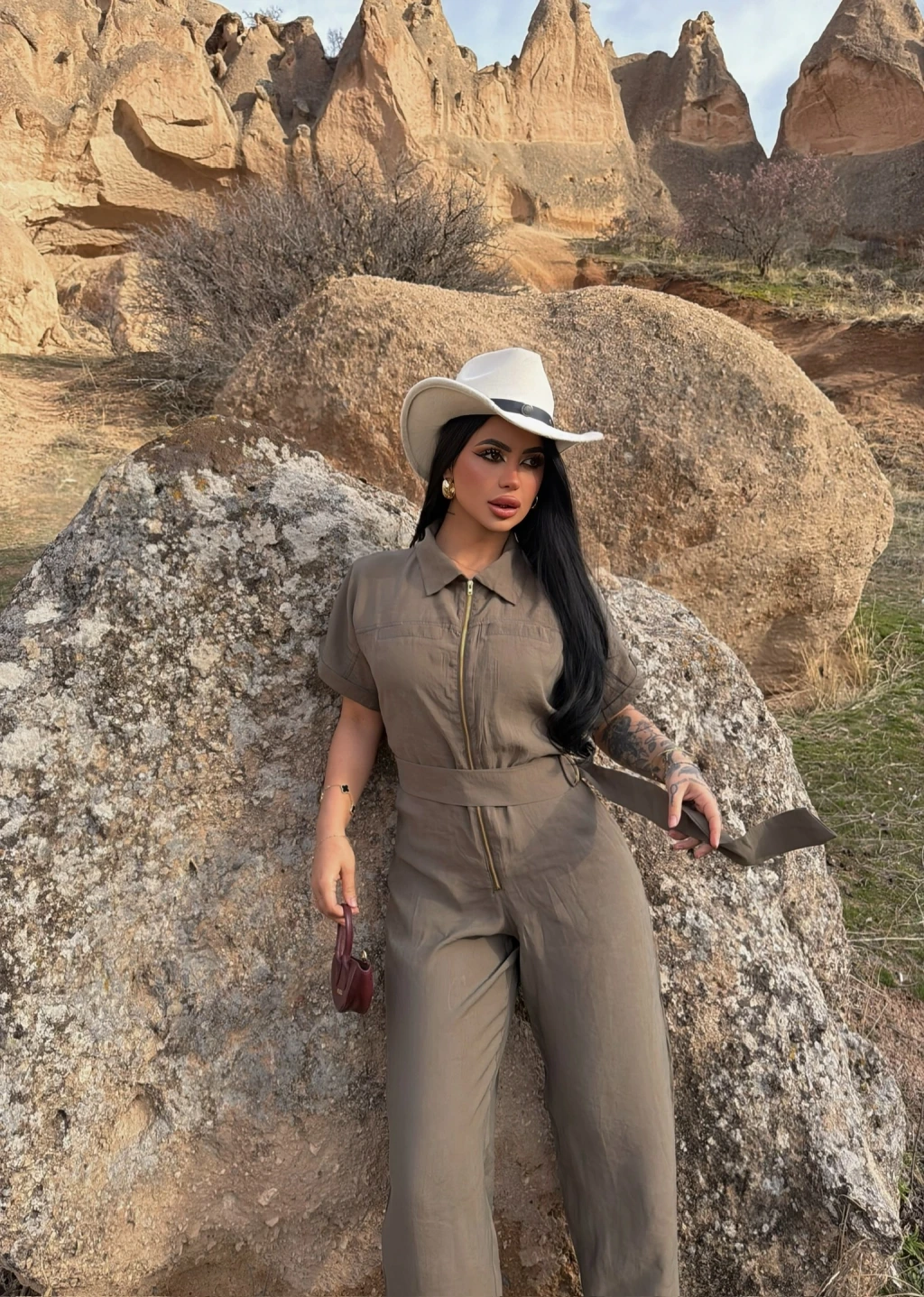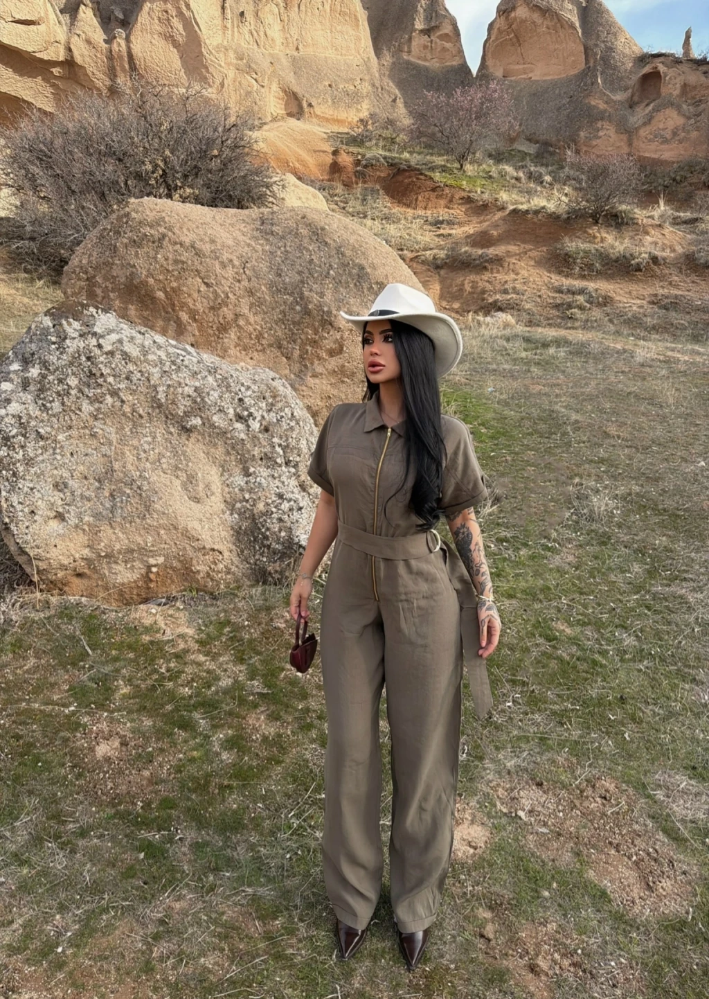 - Kemer detayı, tulumun şıklığını ön plana çıkarır.