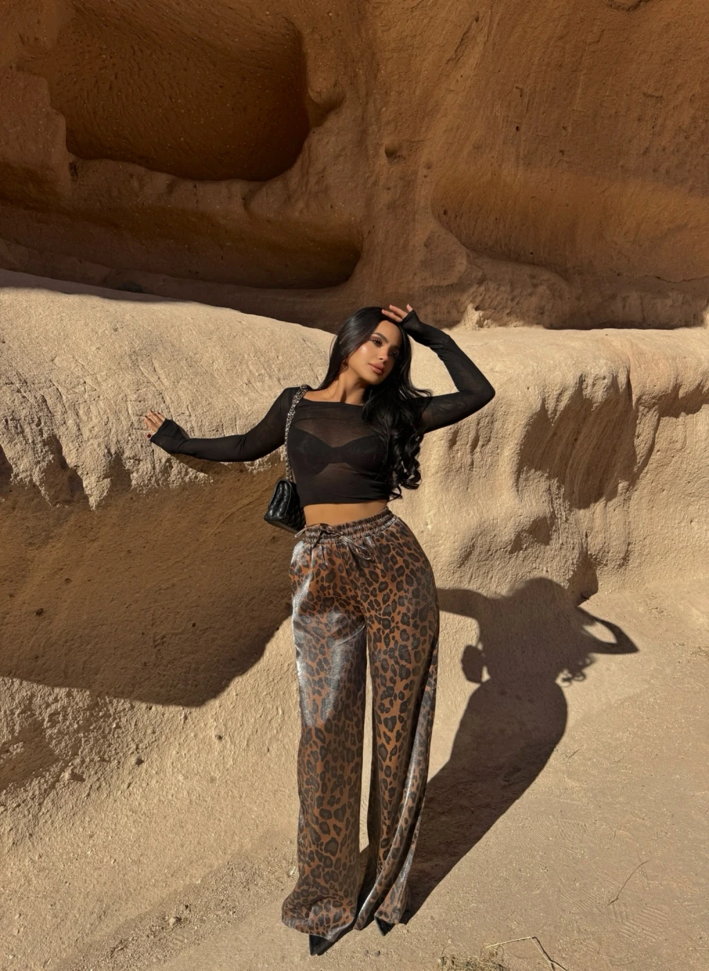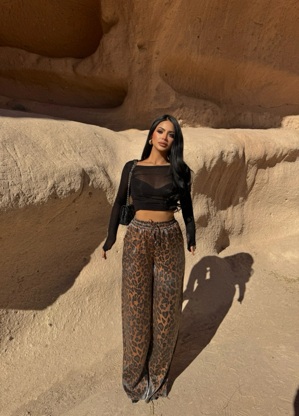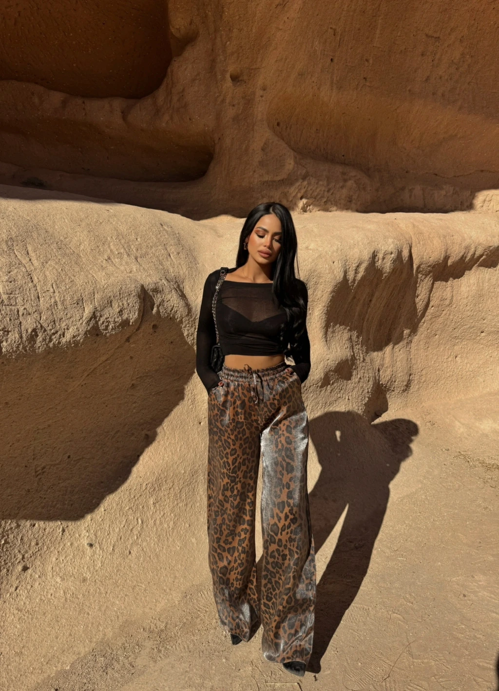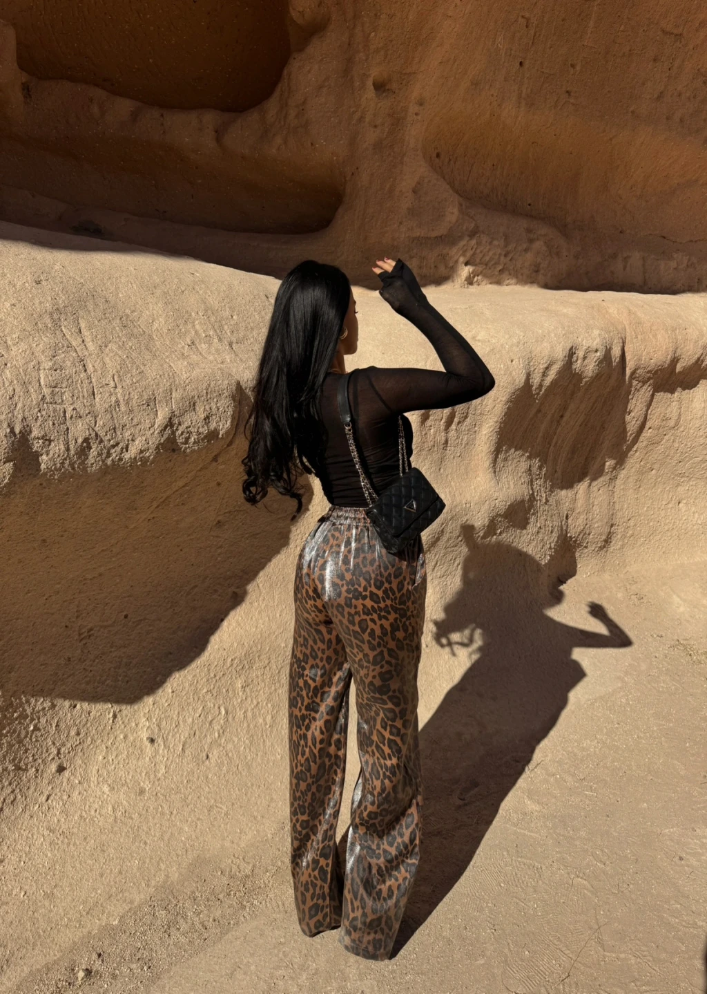Işıltı Leopar Desen Pantolon, gardırobunuza hareket katacak bir parça olarak öne çıkıyor. Kırmızı Butik kalitesiyle tasarlanan bu yüksek bel pantolon, şıklığı ve rahatlığı bir arada sunuyor.