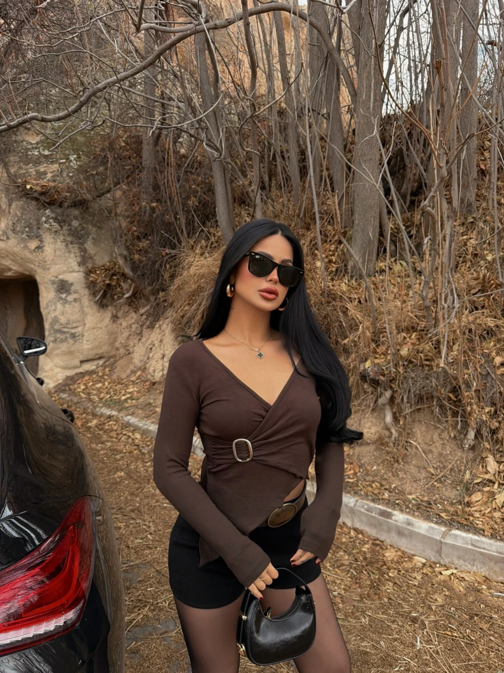 Kahve Bel Tokalı Kruvaze Crop