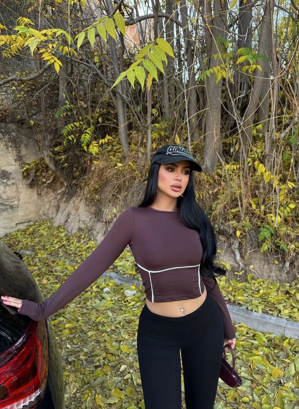Bordo Fularlı İki Parça Crop
