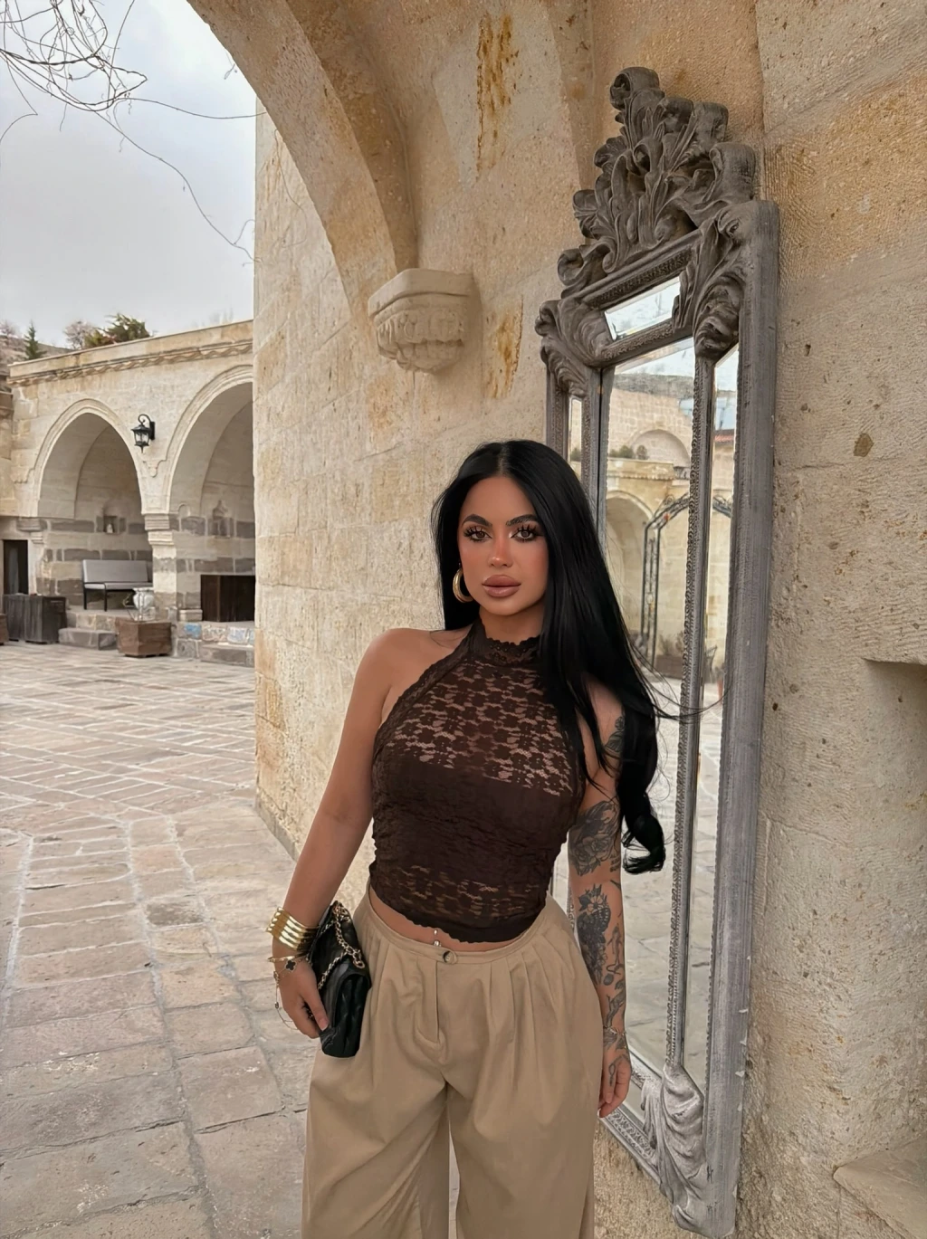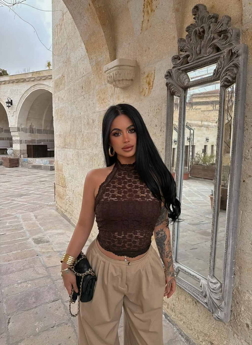 Bohem İçi Astarlı Dantel Crop ile kendinizi özgür ve şık hissedin!