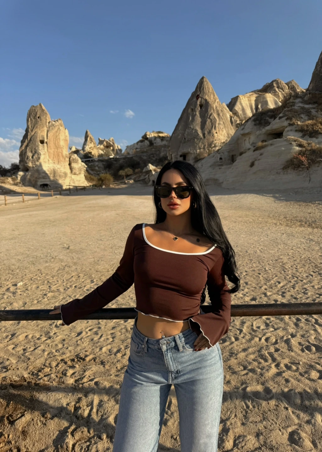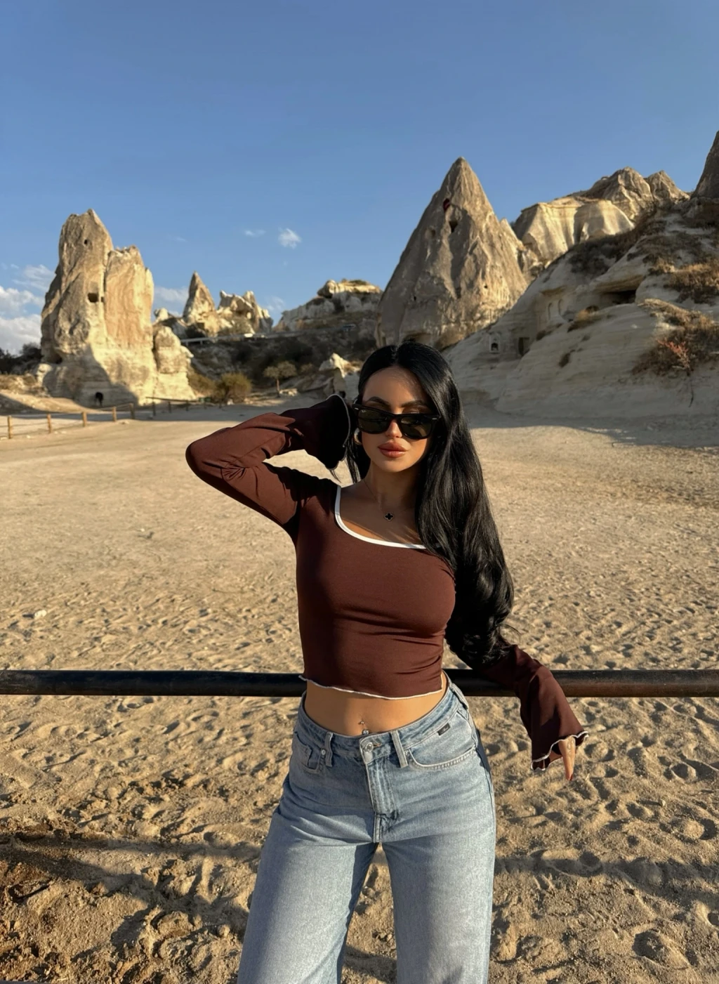 Kahve Çift Aksesuarlı Crop