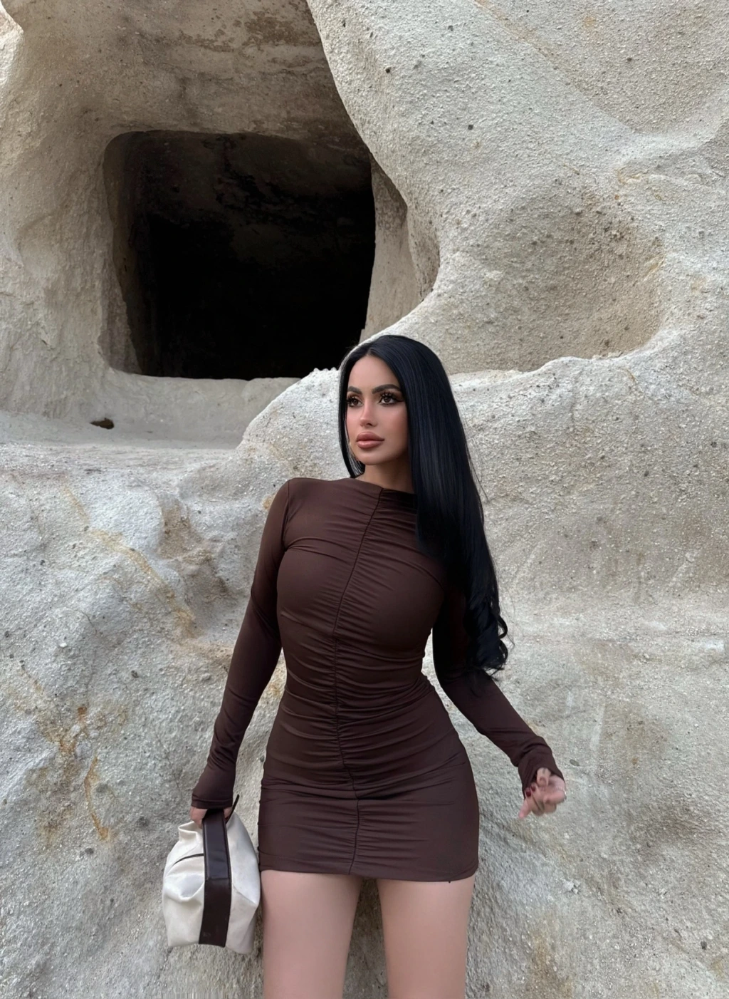 Kırmızı Butik Büzgülü Mini Elbise, şıklığı ve feminenliği bir arada sunan bir tasarıma sahiptir.