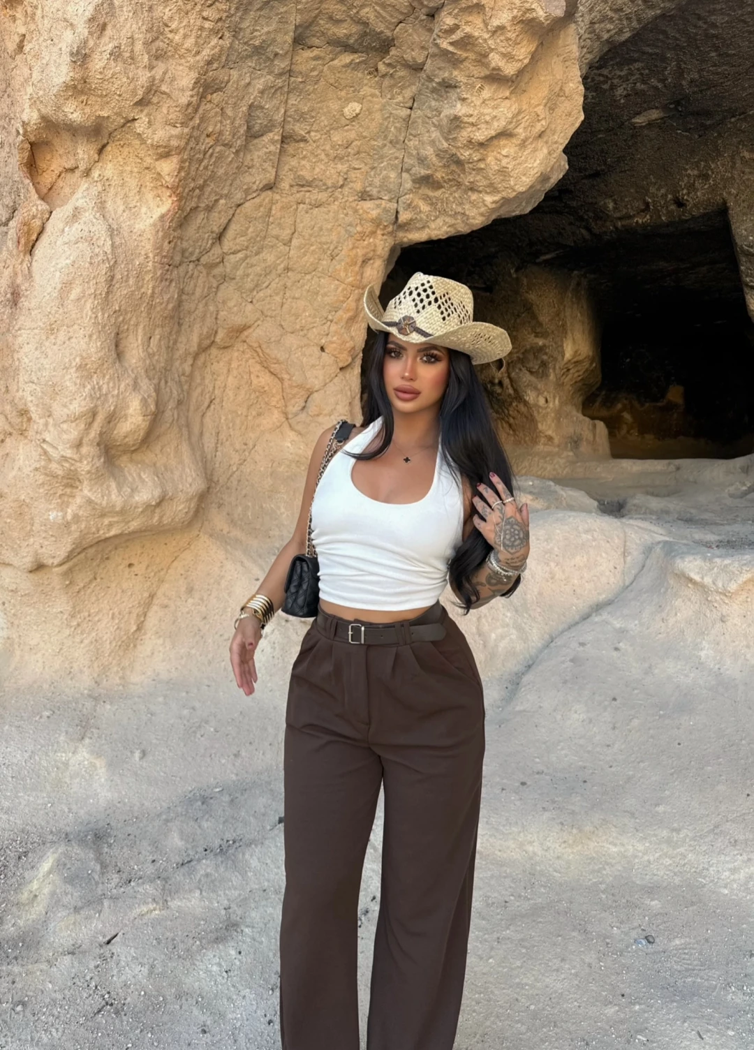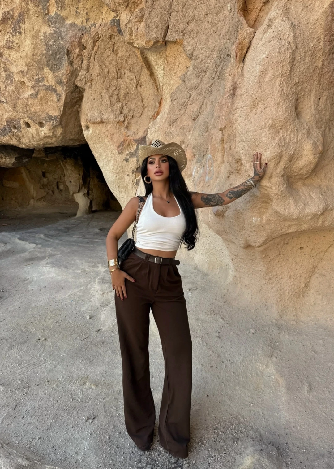 Kahve Kemerli Slim Flare Pantolon