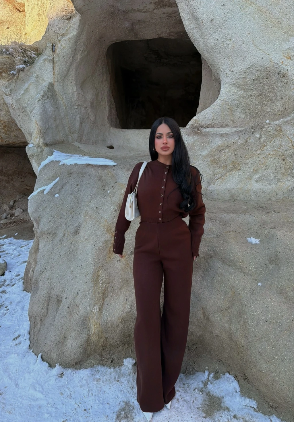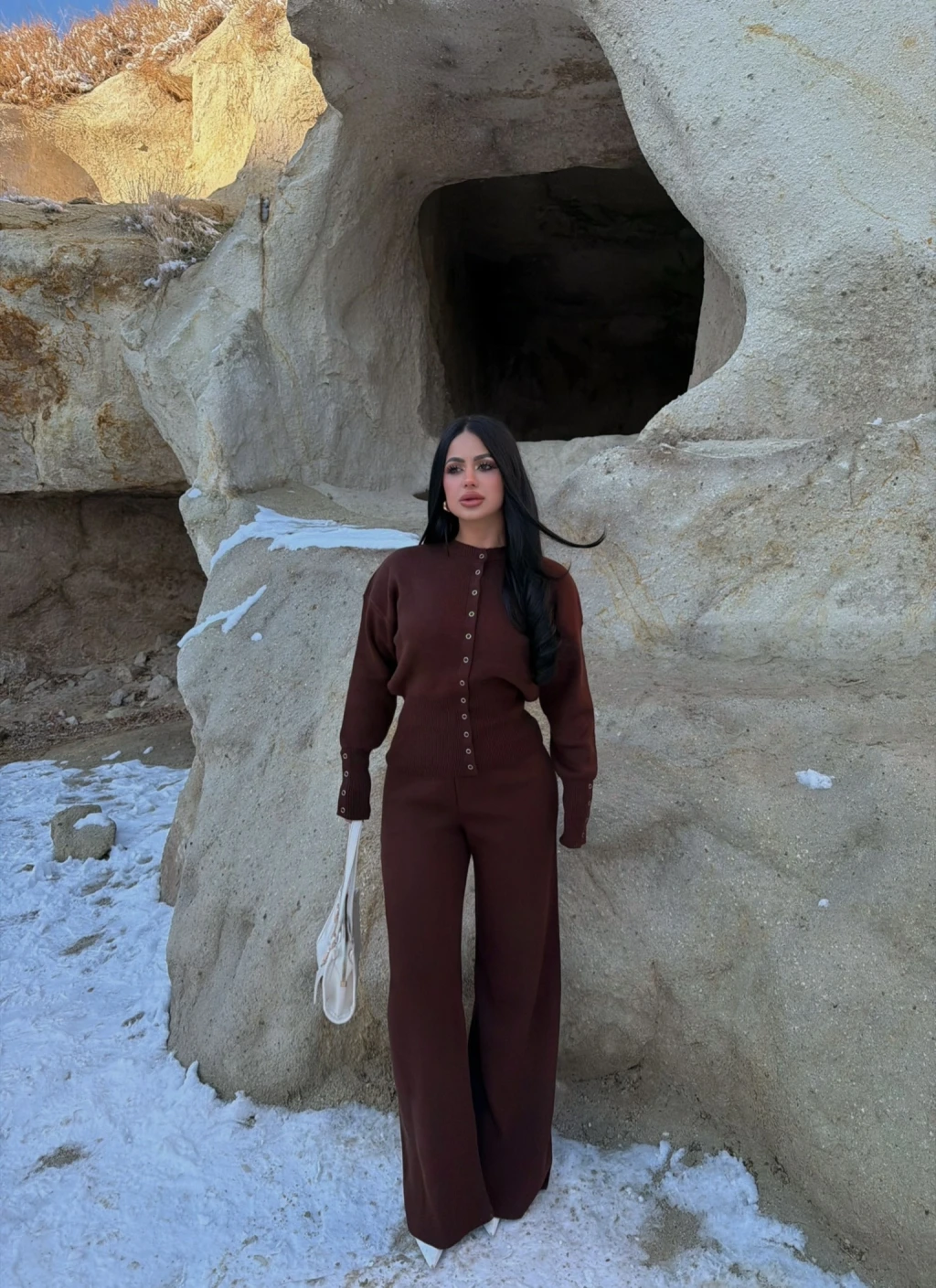 Kahve Çıtçıtlı Triko İkili Takım