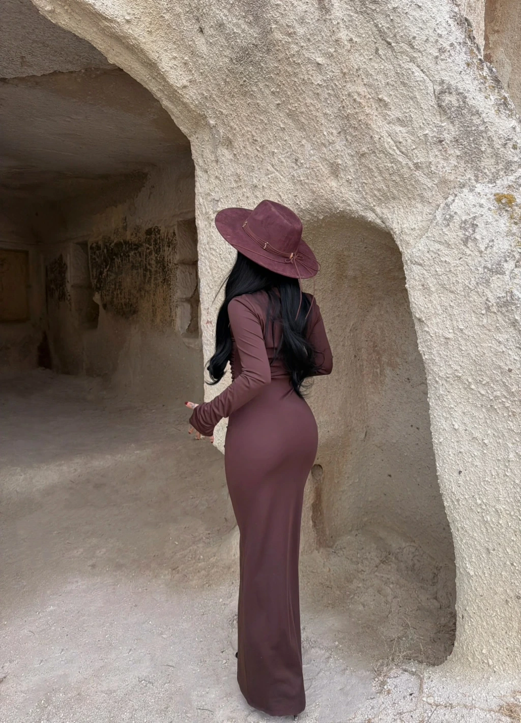 Kırmızı Butik'in şıklığı ve rahatlığı bir arada sunan Dik Yaka Büzgülü Maxi Elbise, gardırobunuzun vazgeçilmezi olmaya aday!