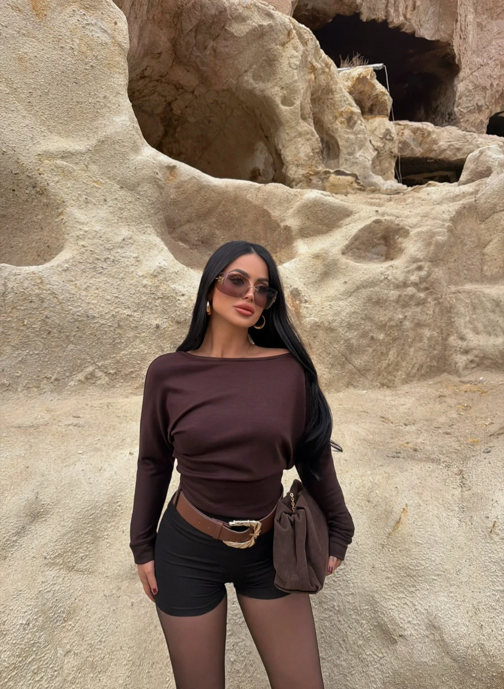 Düşük omuz korseli tasarımıyla şık bir görünüm sunar.