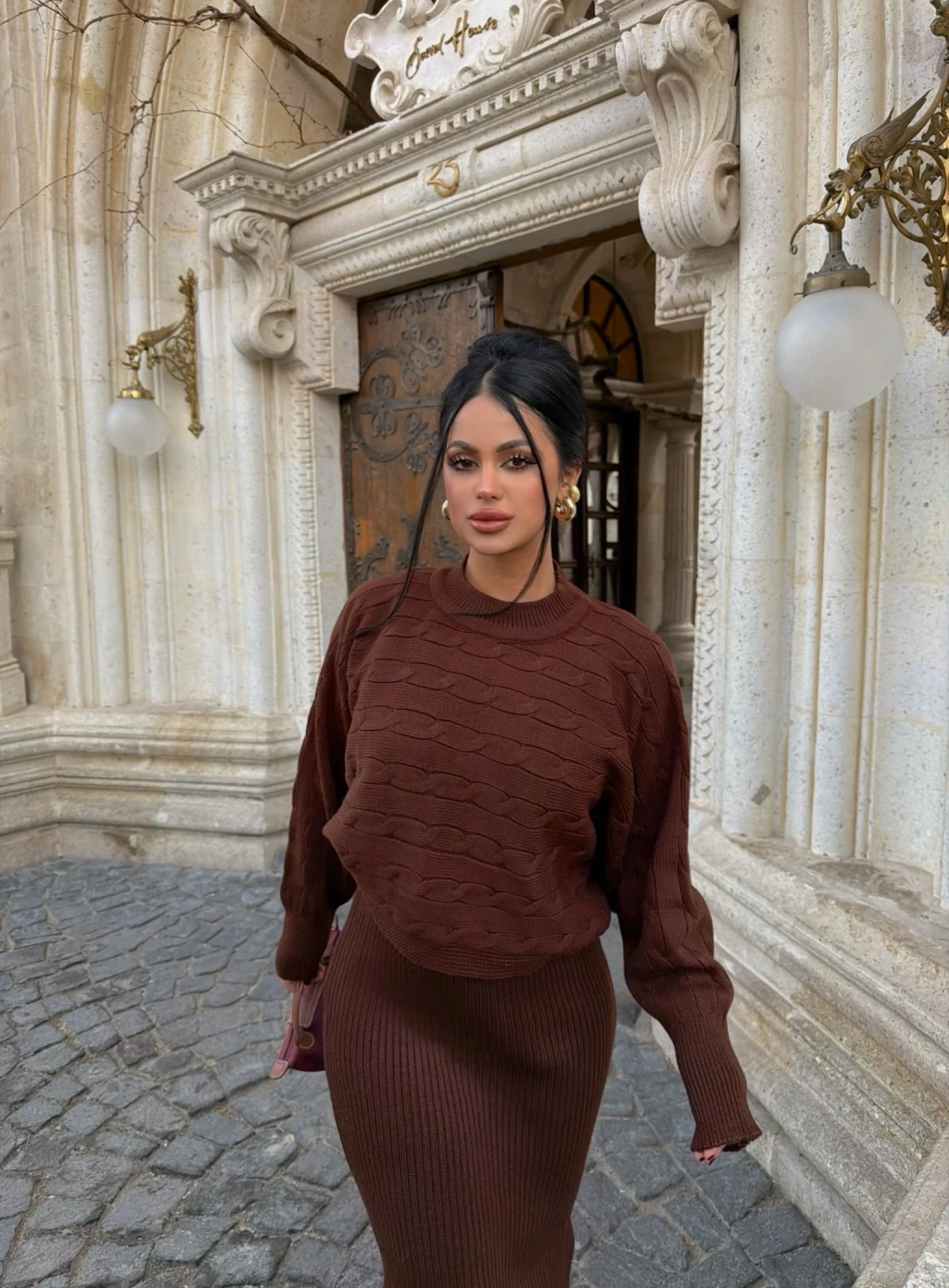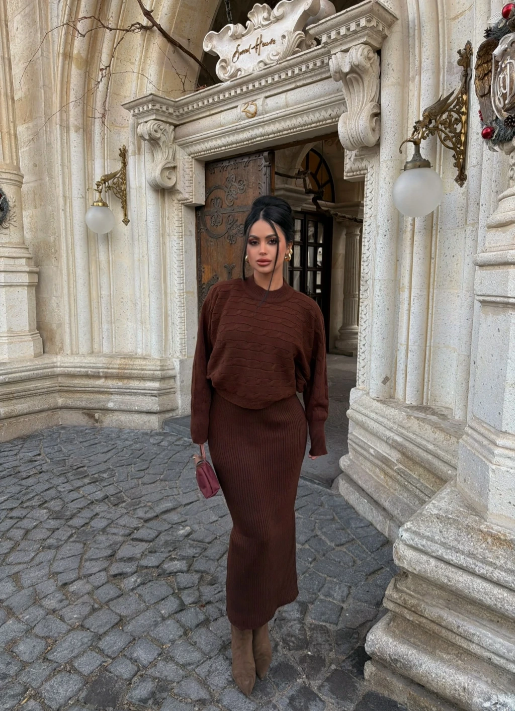 Kırmızı Butik Elbise Kazak Triko Takım ile zamansız ve şık bir görünüme sahip olabilirsiniz.