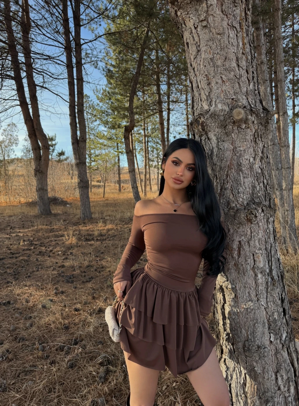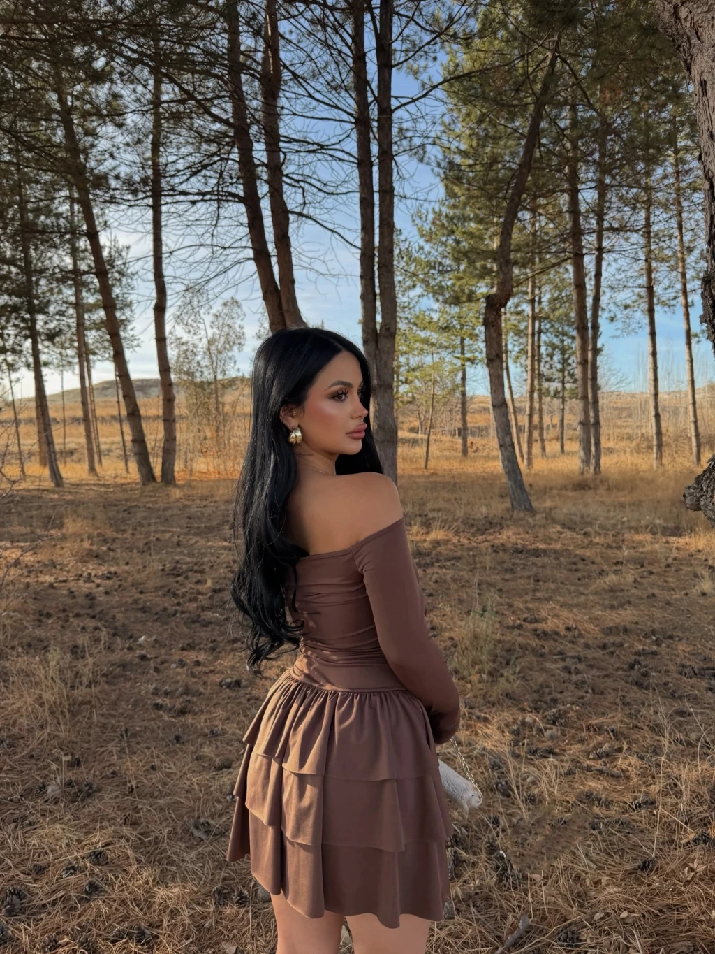 İster günlük şıklıkta kullan, ister özel davetlerde, Eteği Fırfırlı Madonna Elbise her zaman şıklığınızı tamamlayacak.