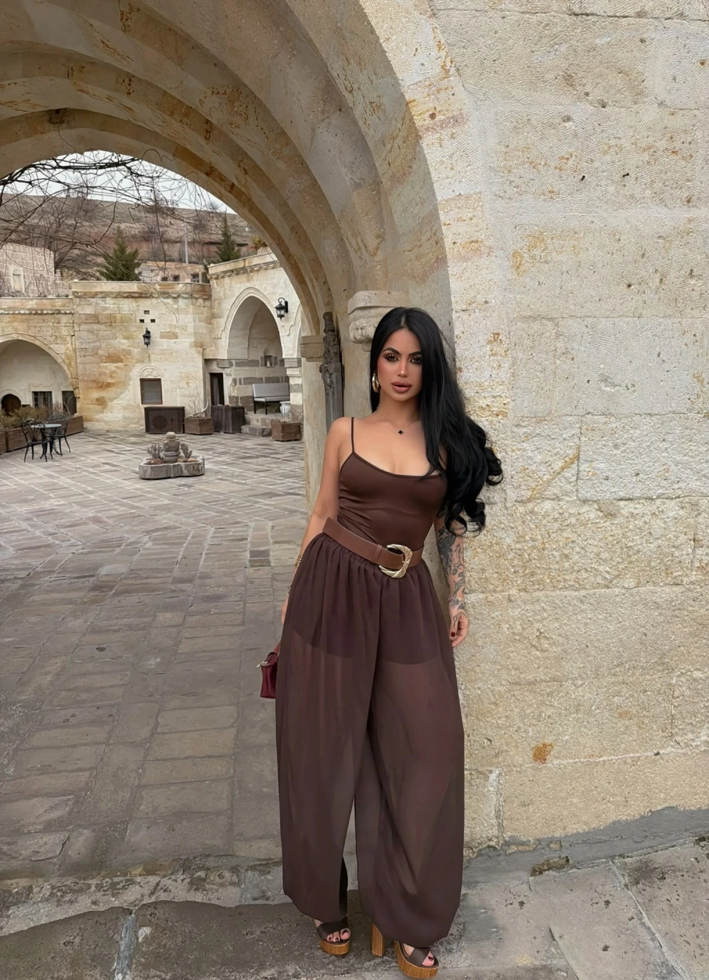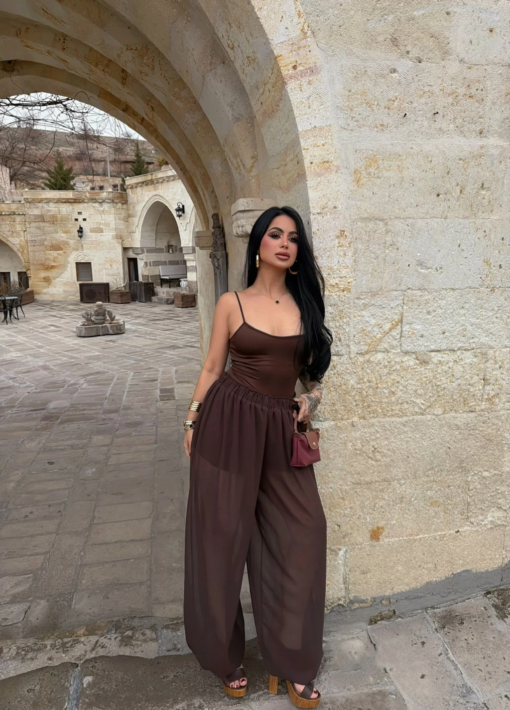 Kahve İçi Astarlı Şalvar Pantolon