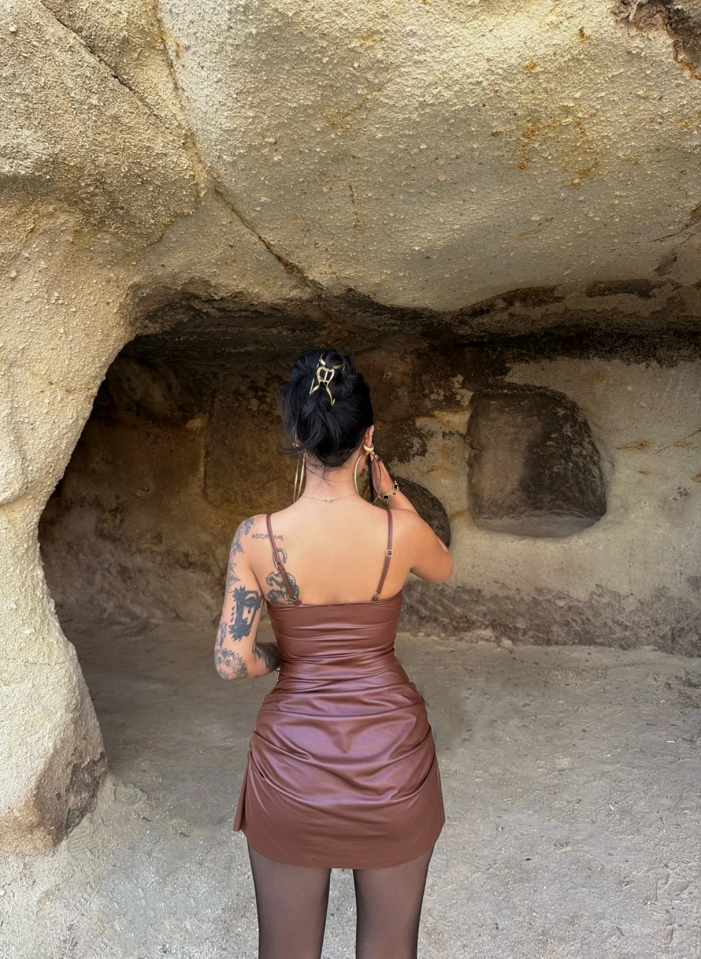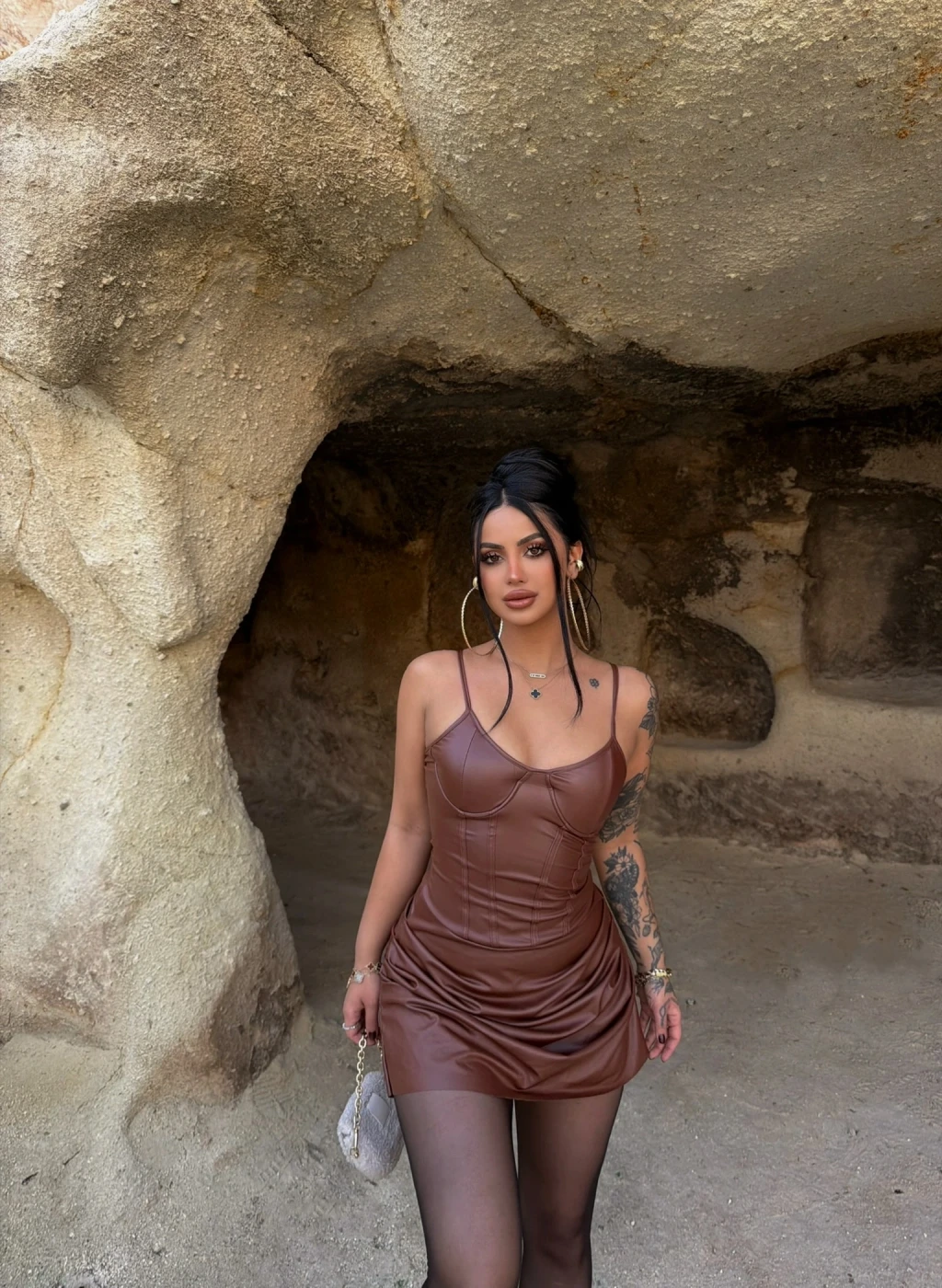 Kahve İp Askılı Balenli Elbise