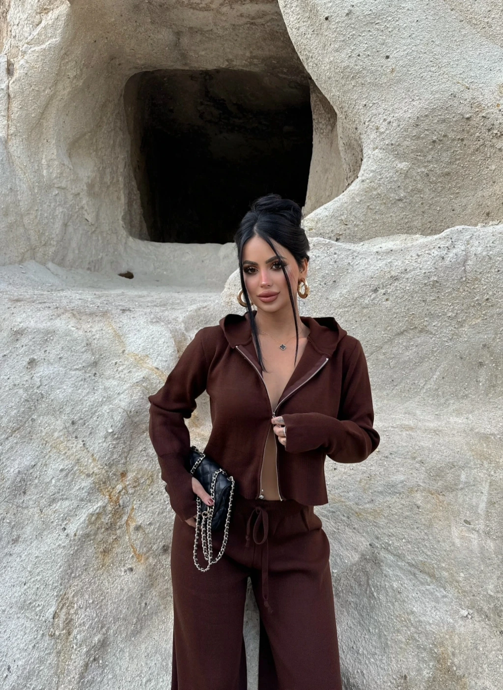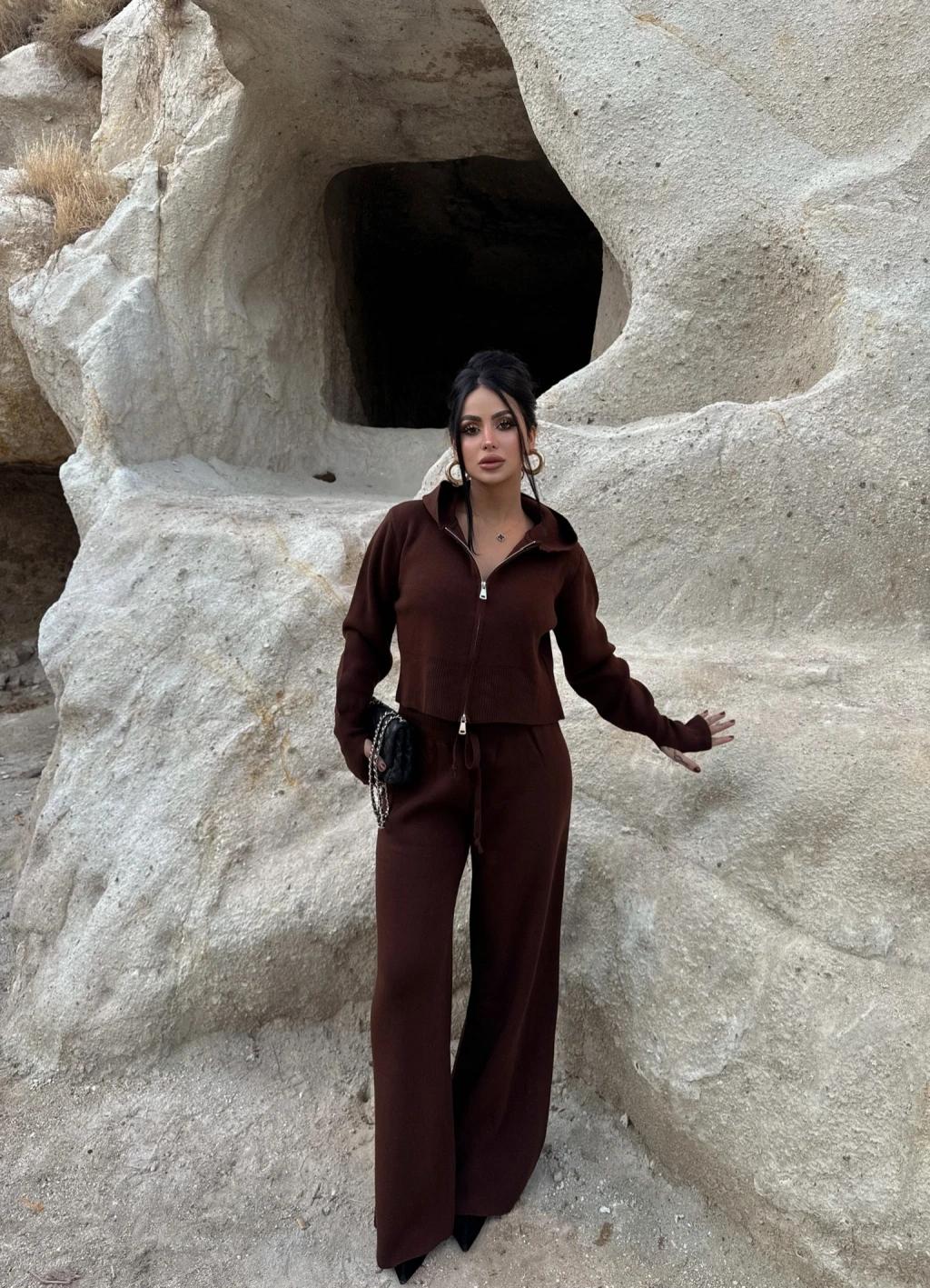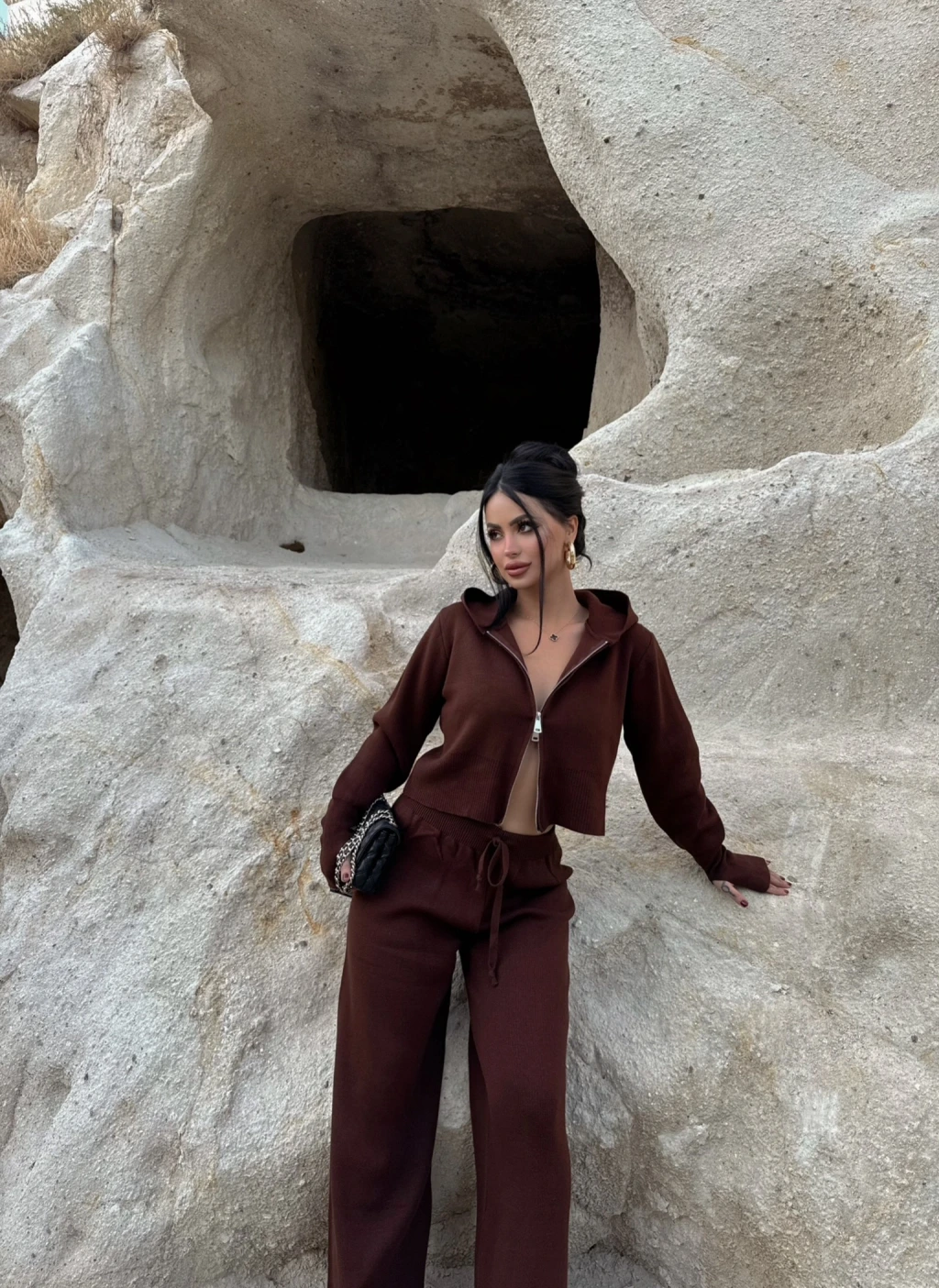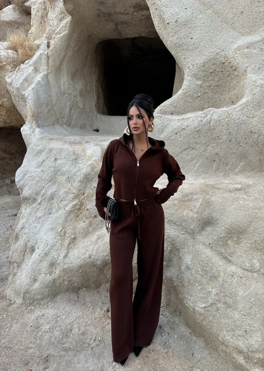 Kırmızı Butik'in şık ve trend tasarımlarından biri olan Kapşonlu Triko İkili Takım, kombinasyonunuzda tarz ve rahatlığı bir araya getiriyor.