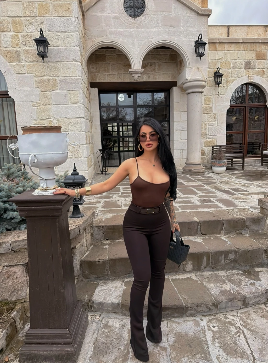 Kahve Kemerli Slim Flare Pantolon