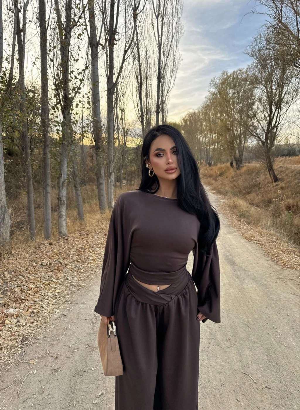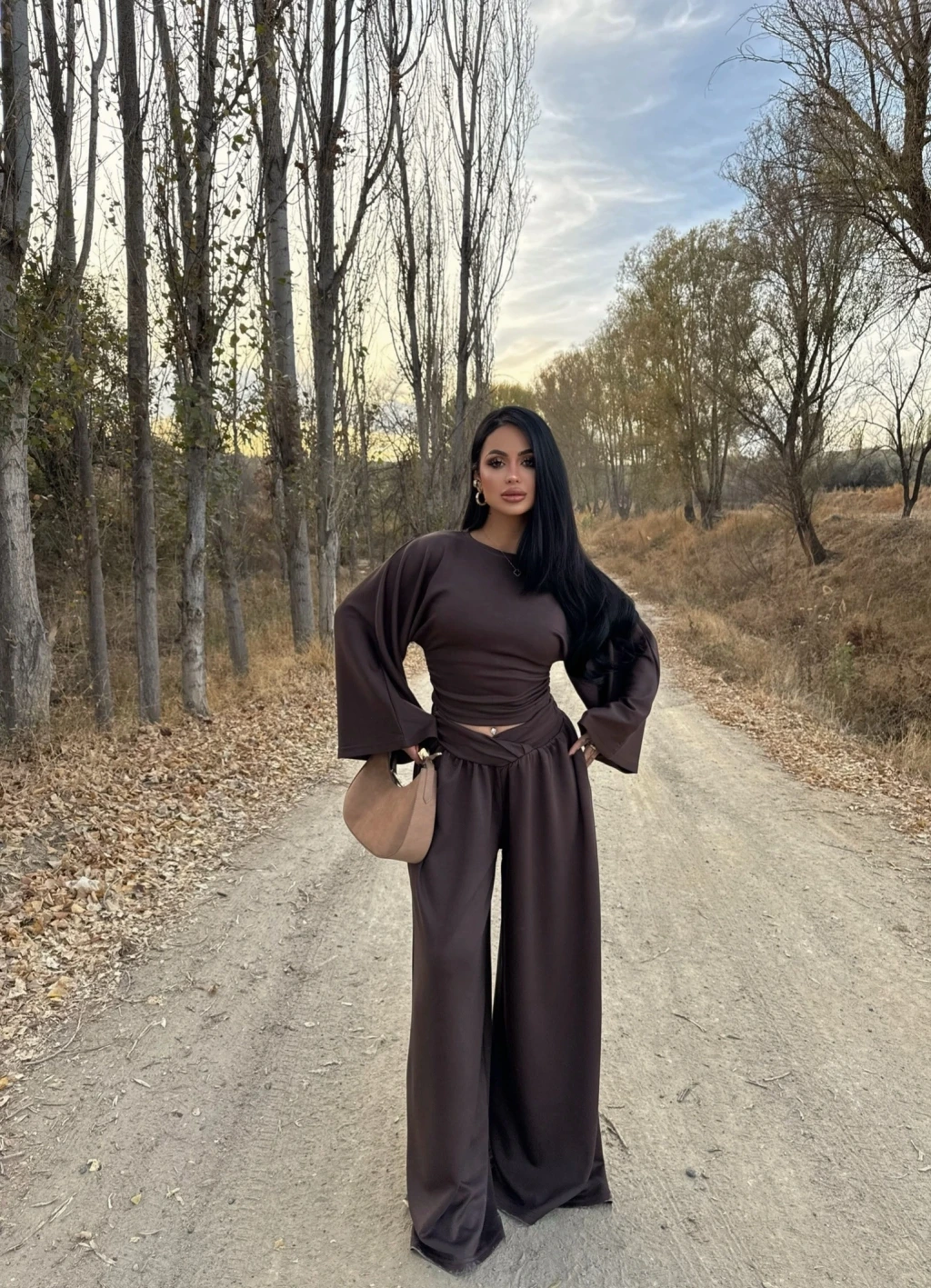 Üst ve alt parça uyumlu renk kombinasyonuyla dikkat çeker.