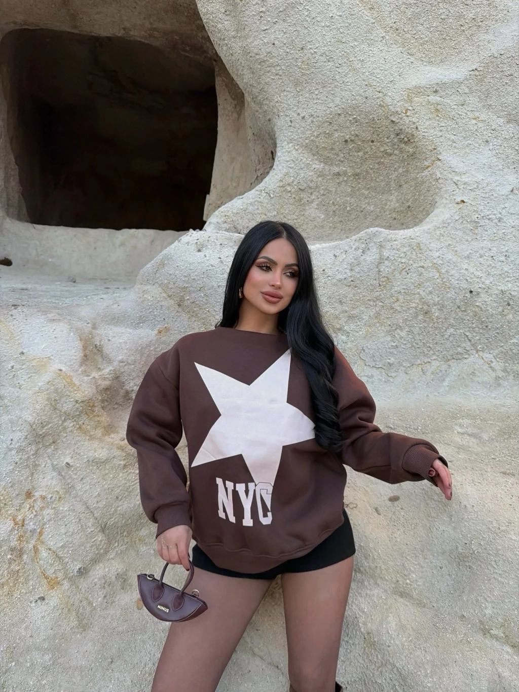 NYC Kayık Yaka Sweat, şıklığı ve rahatlığı bir arada sunan Kırmızı Butik'in özel tasarımıdır. Oversize kesimi ile modern bir görünüm sunan bu sweatshirt, her mevsim kullanım için idealdir.