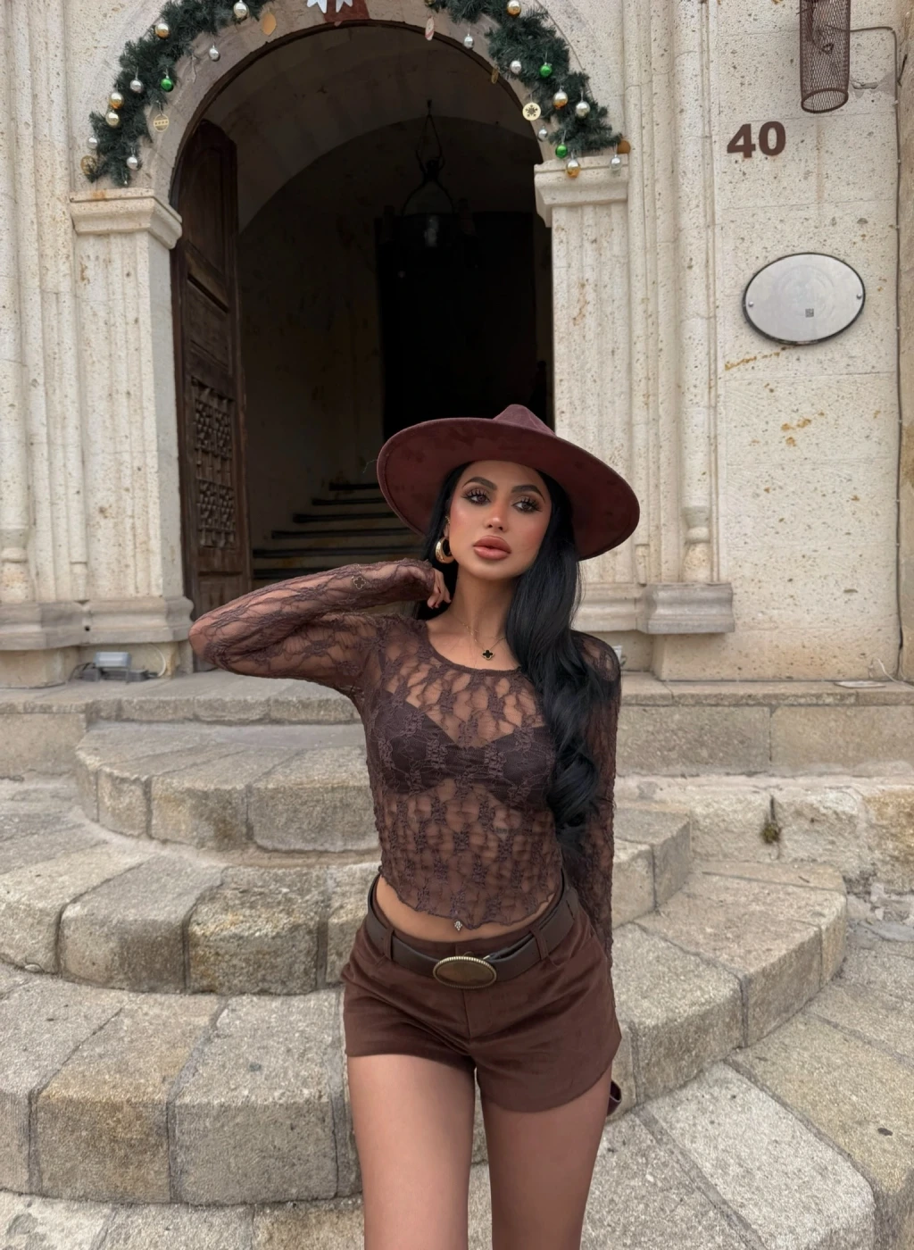 Kısa kesimi sayesinde yüksek bel pantolonlarla veya eteklerle mükemmel uyum sağlar.