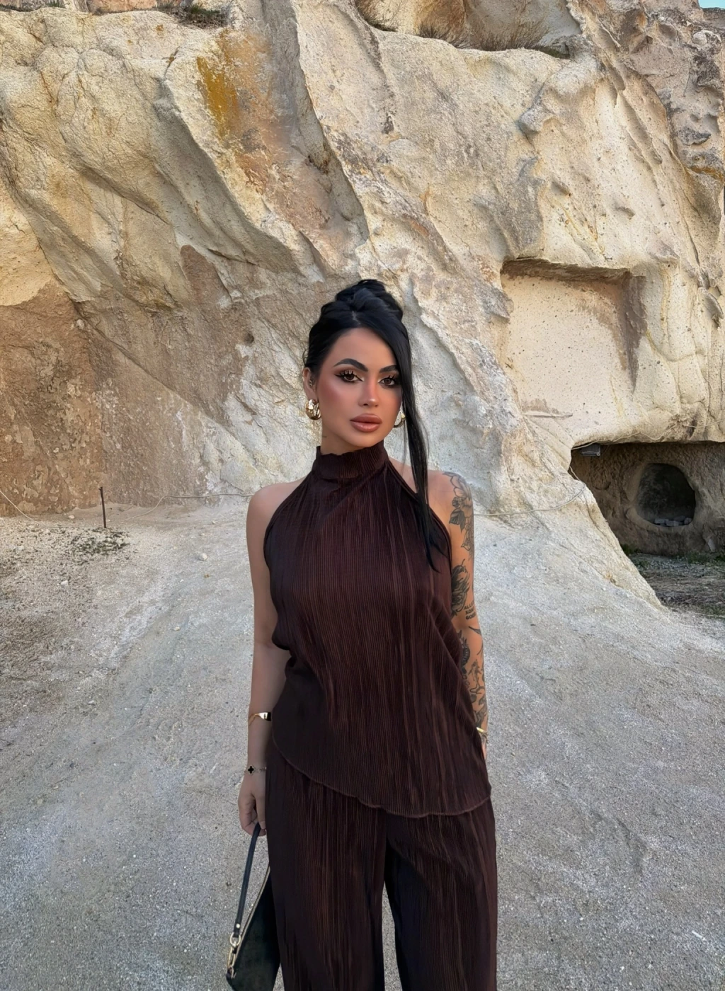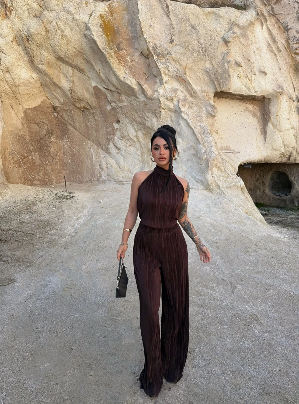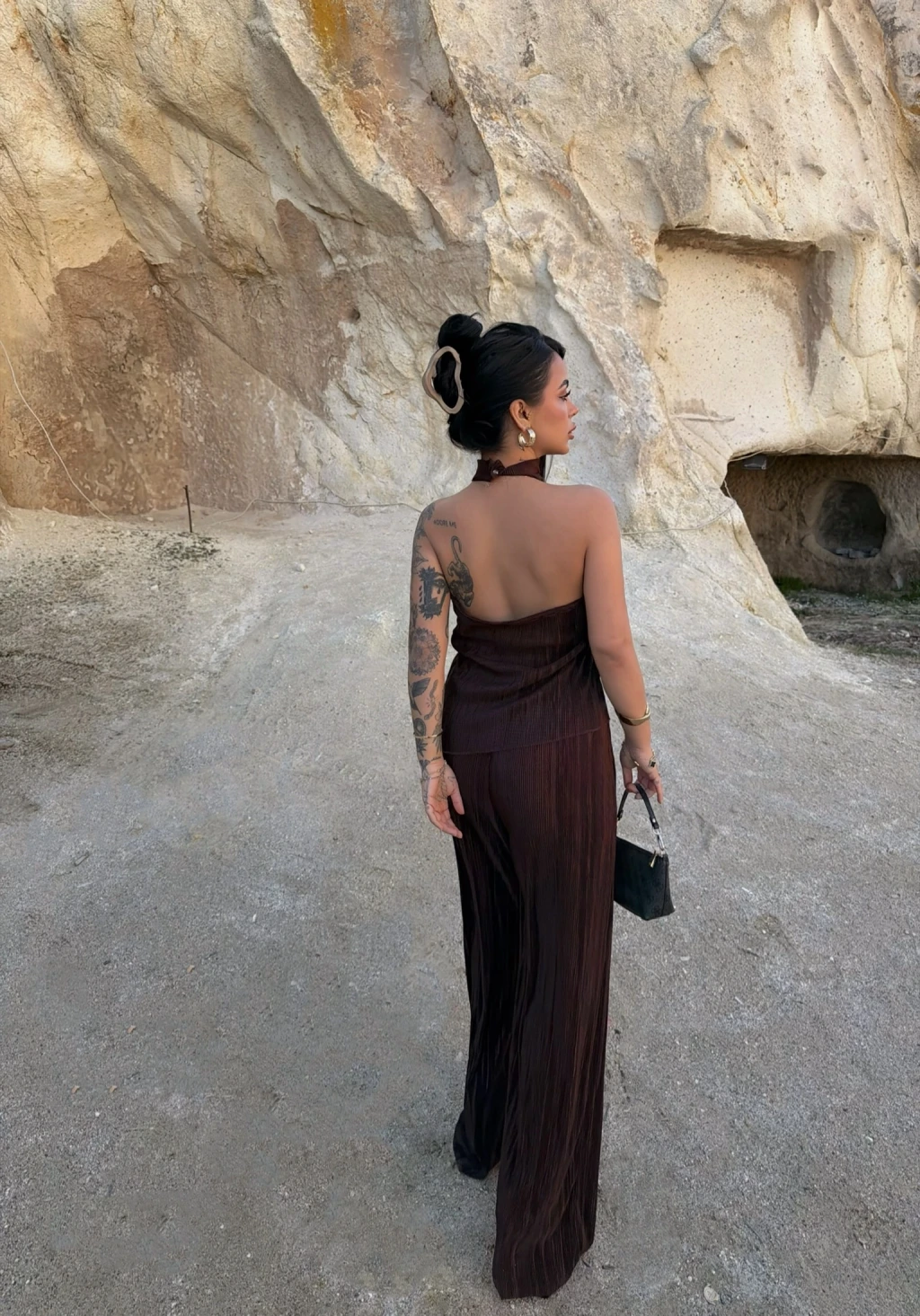 - Sırt dekolte detayı ile feminen bir görünüm sunar.