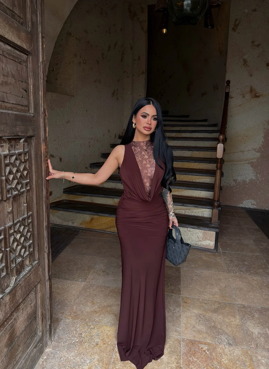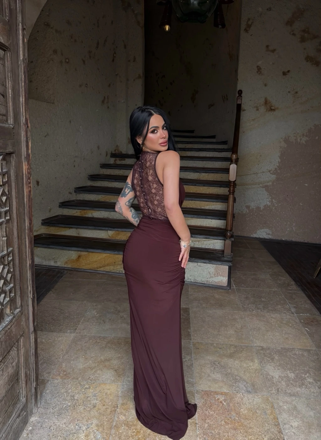 - Uzun ve vücuda oturan kesimi ile feminen bir görünüm sunar.